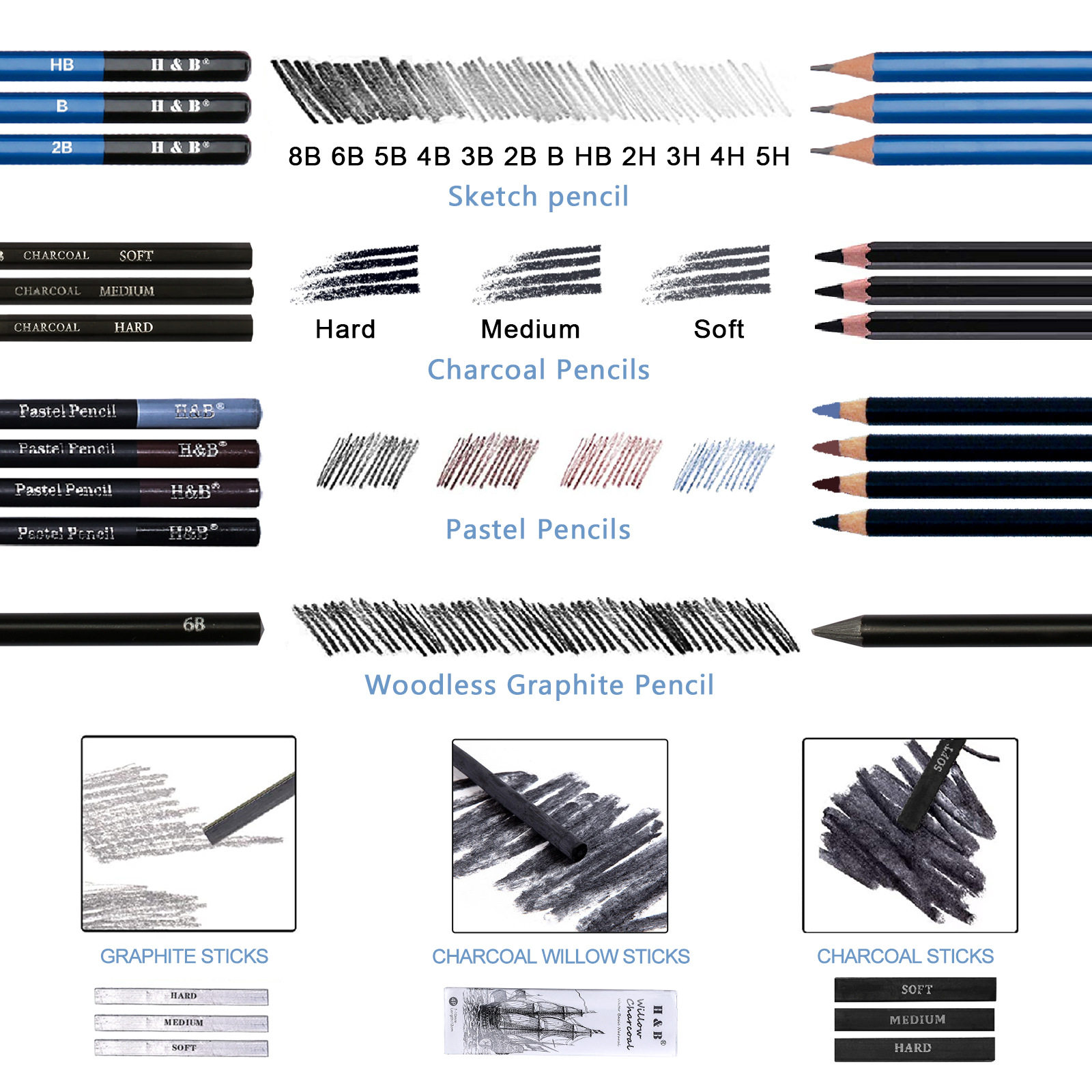 40 piece painting set, sketching set, pencil kit素描套装铅笔 - Amy Culture Technolo