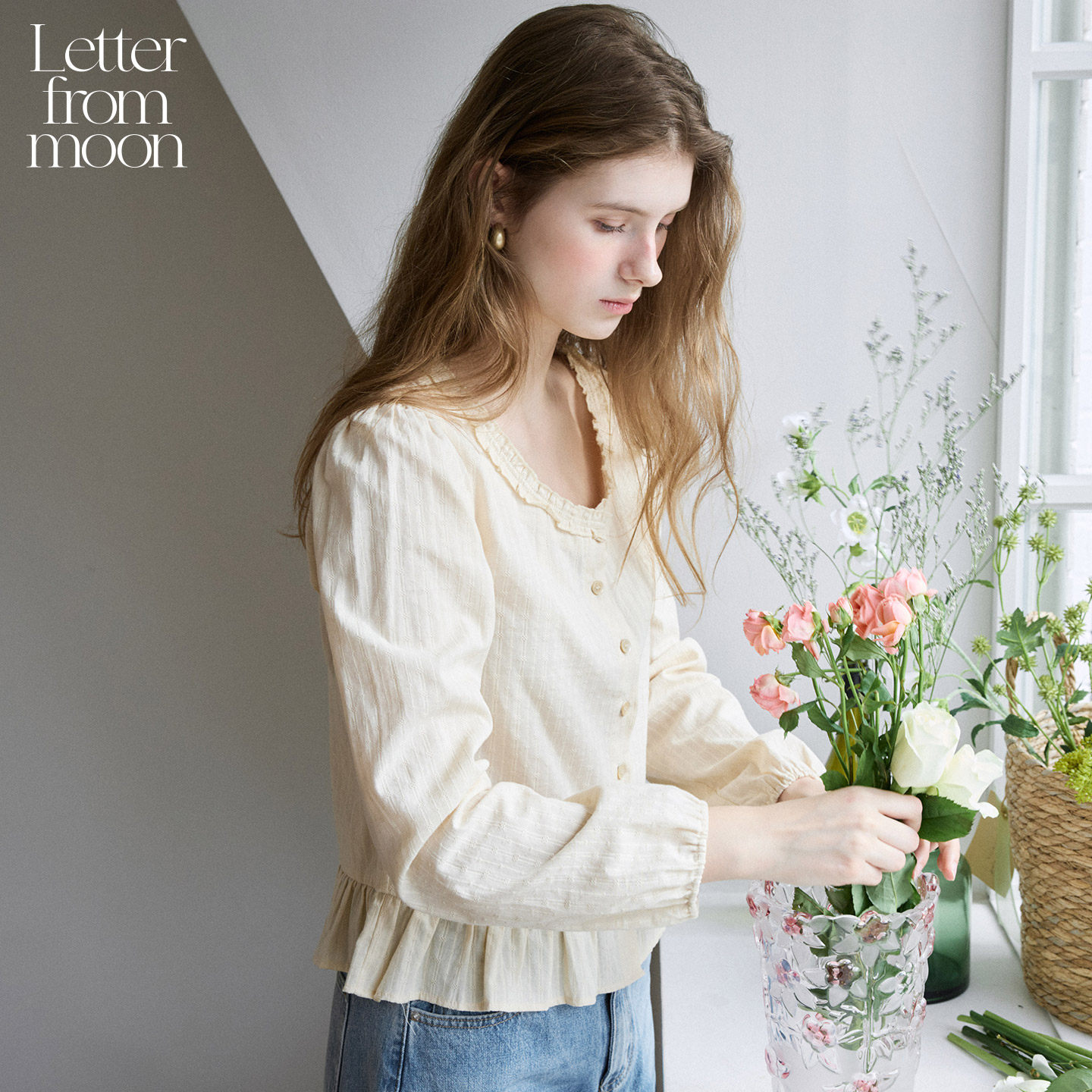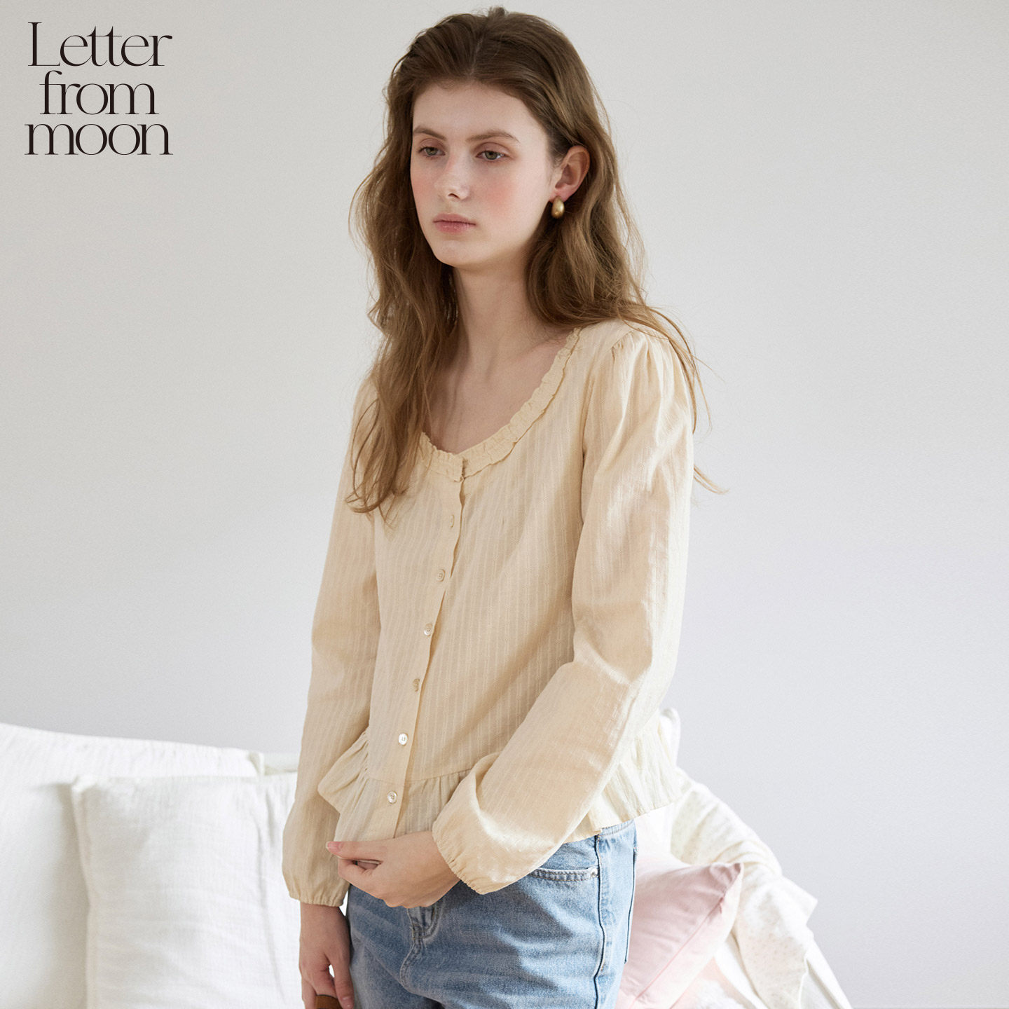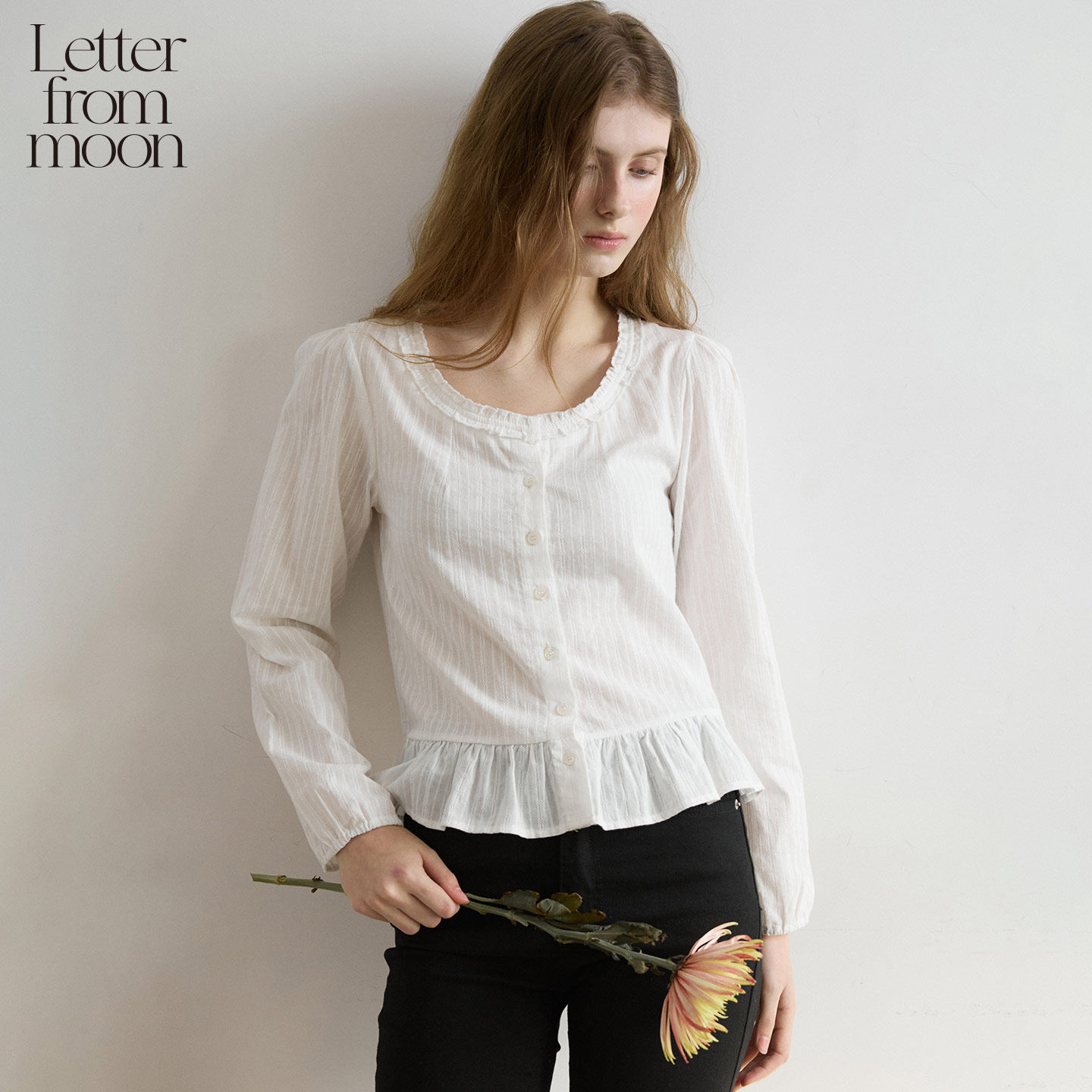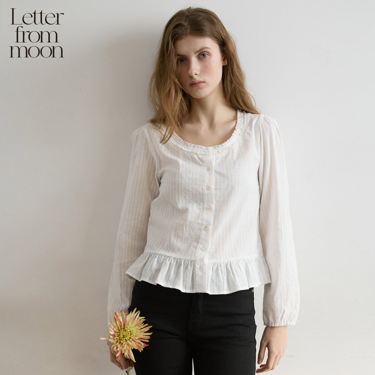 Letter from moon圆领荷叶边衬衫2026年春季新款修身开衫休闲衬衣 - Letter from moon旗舰店