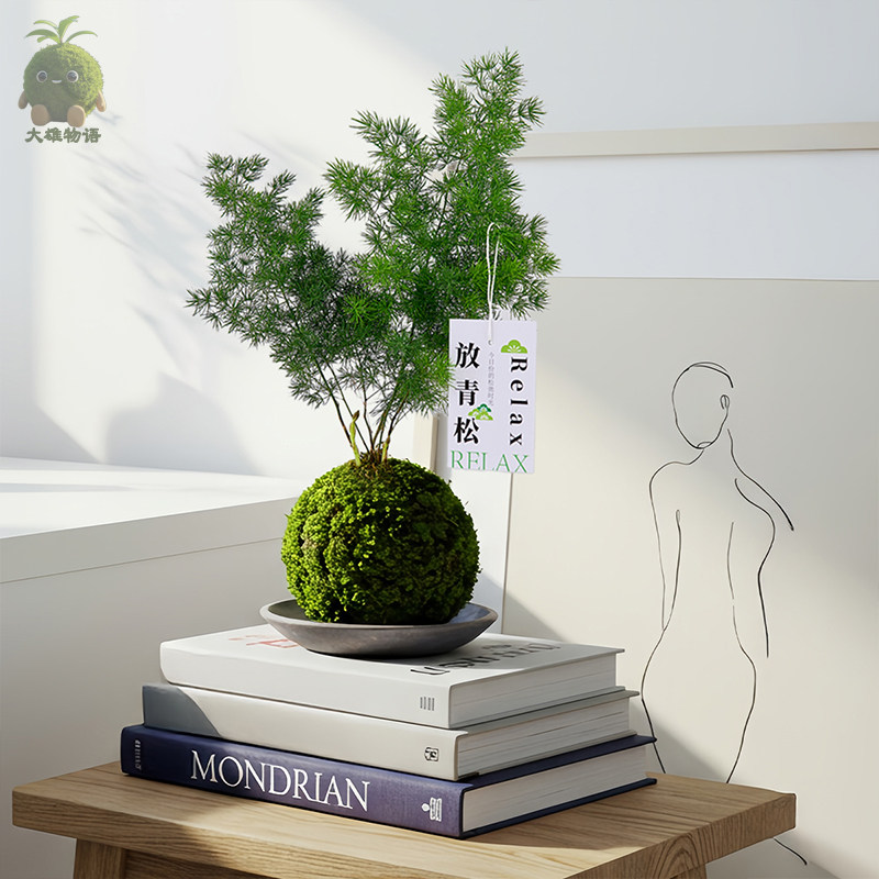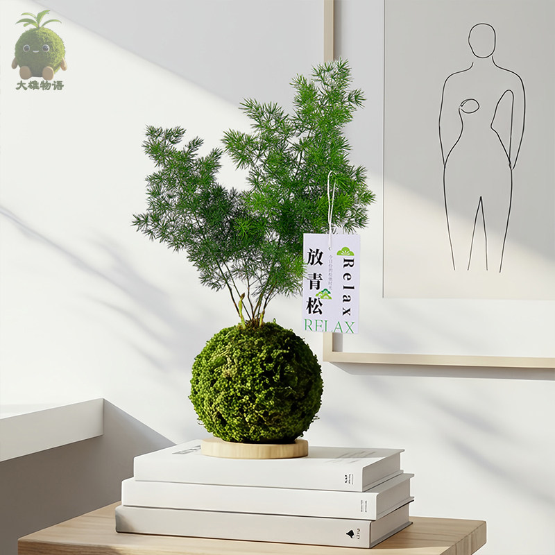 【放轻松】蓬莱松苔藓球室内桌面创意绿植苔玉办公室植物好养盆栽 - 大雄物语