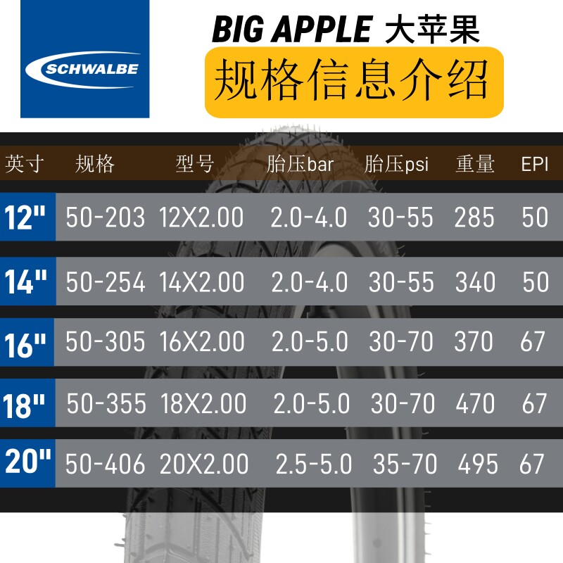 世文BIG APPLE大苹果14 16寸2.00小轮折叠车防刺轮胎K3PLUS改装 - 彦益户外运动商行