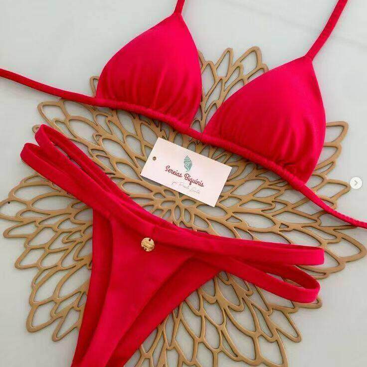 2026新款欧美性感比基尼泳衣女纯色简约风格分体泳装 - foreign trade good