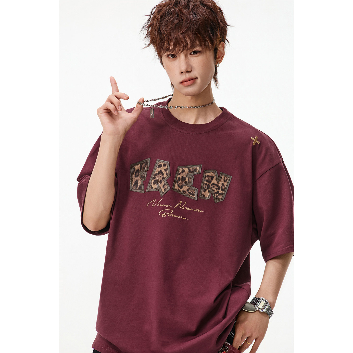 NTBF美式高街豹纹印花短袖T恤男夏季潮牌撞色立体刺绣上衣半袖衫 - CODE潮流工作室