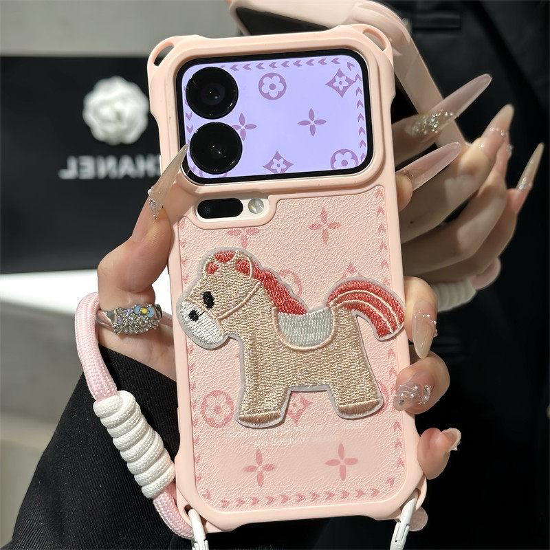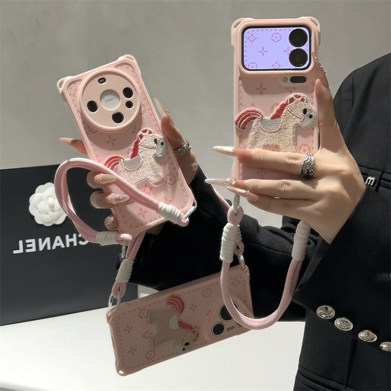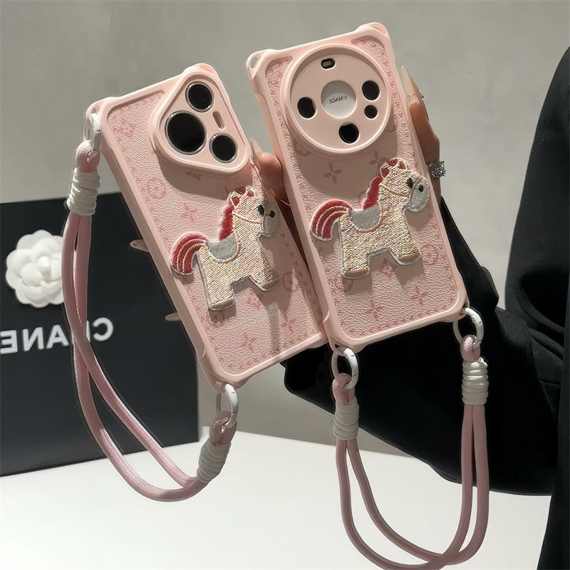 粉刺绣小马适用iPhone17promax手机壳13苹果16pro新款15四角防摔华为mate70挂绳vivox200荣耀oppo红米note14 - 啵啵啵工作室