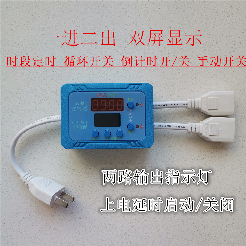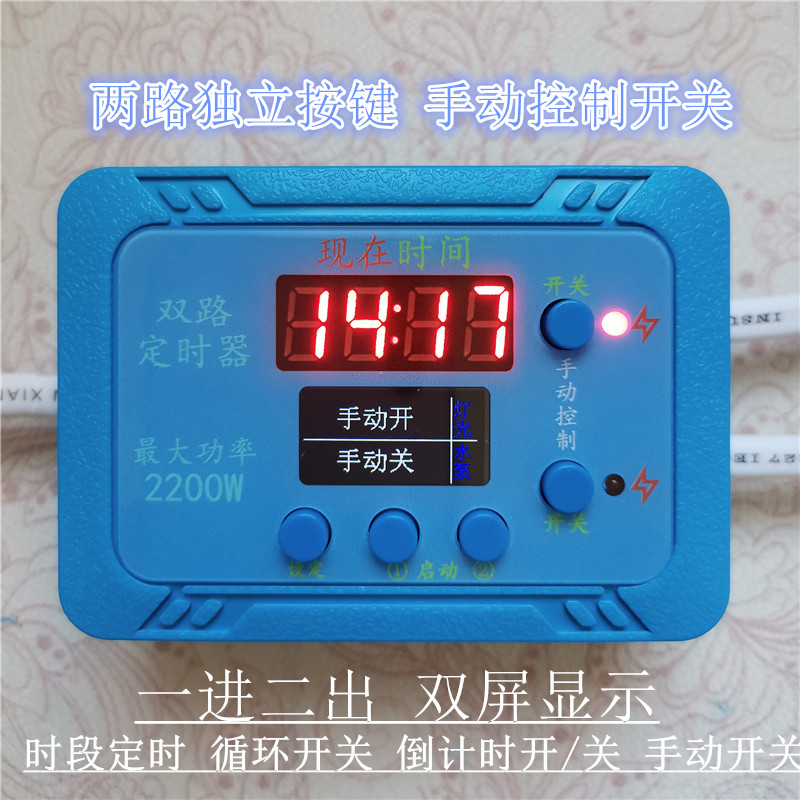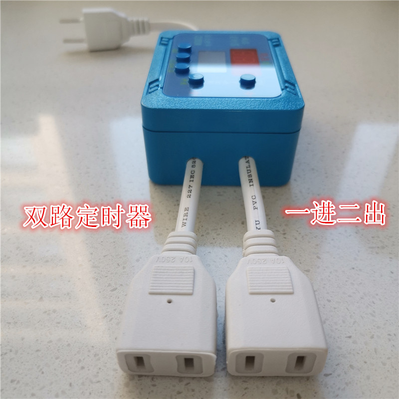 鱼缸双路定时器开关 一进二出独立控制 免接线 LED时钟 循环时控 - 天津智多新电子