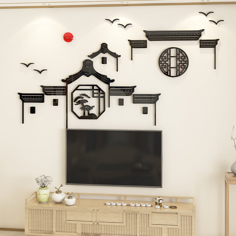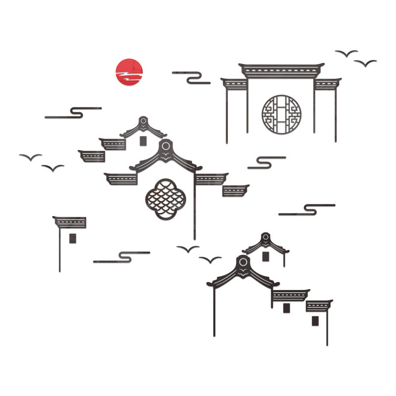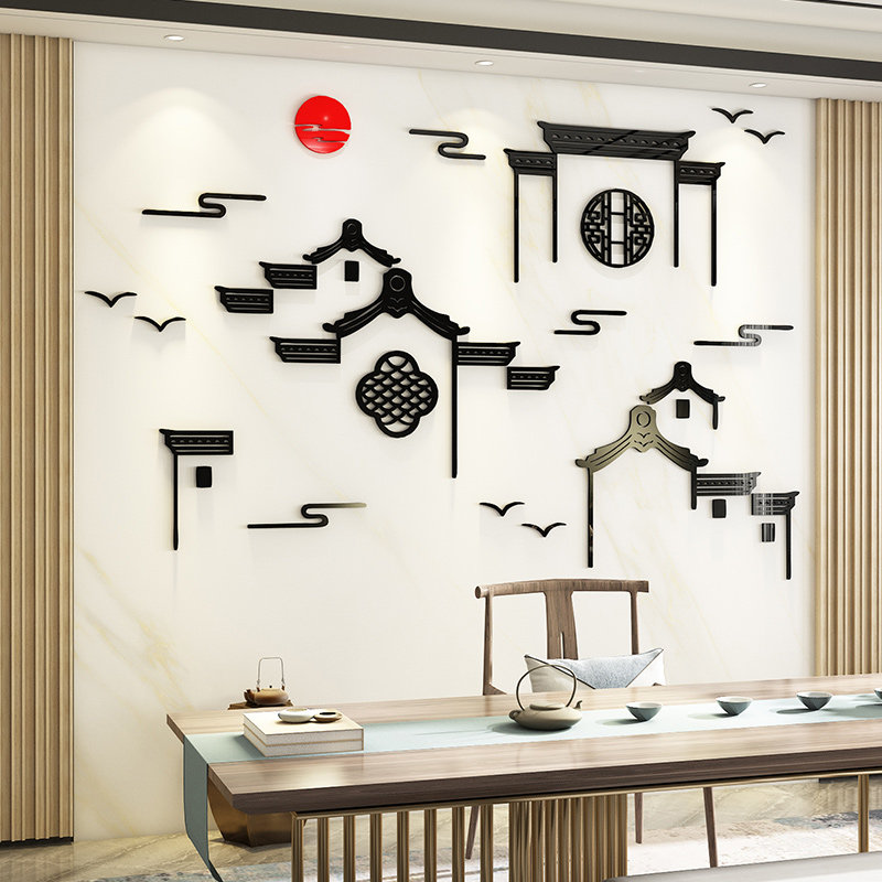 创意复古徽派建筑饭店墙面装饰中式山水包厢间布置3d立体墙贴纸画 - 纸鸢苑商城的小店50