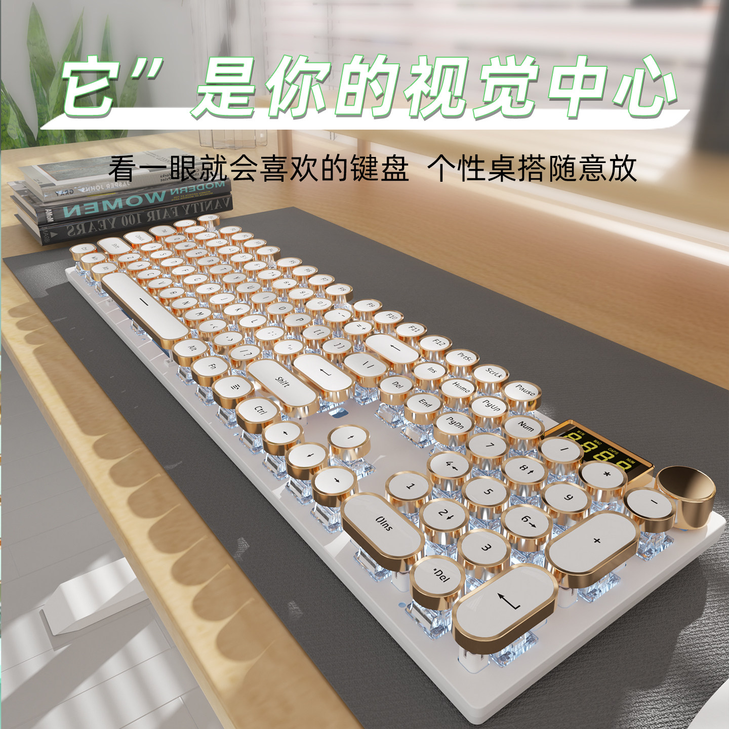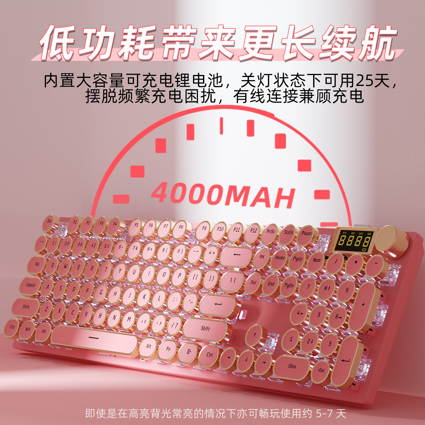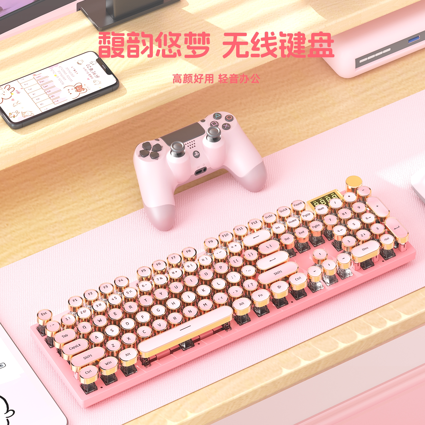 ColorReco K74复古朋克三模机械键盘女生办公打字电脑无线高颜值 - ColorReco旗舰店