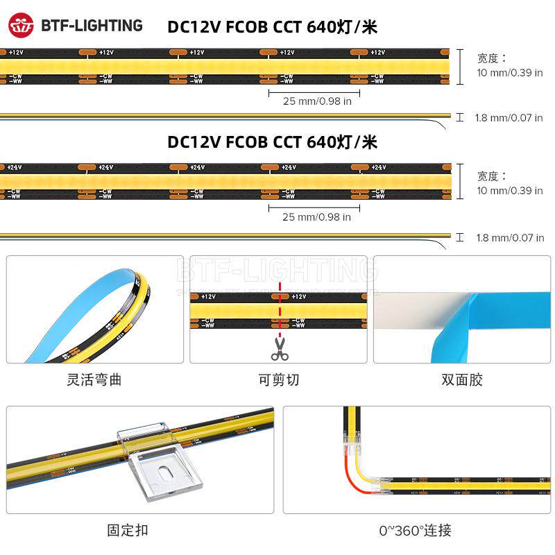 您的位置:安康生态农业开发平台  >   >  COB双色温CCT冷暖白灯条高显指12V可调节家装室内氛围24VLED灯条