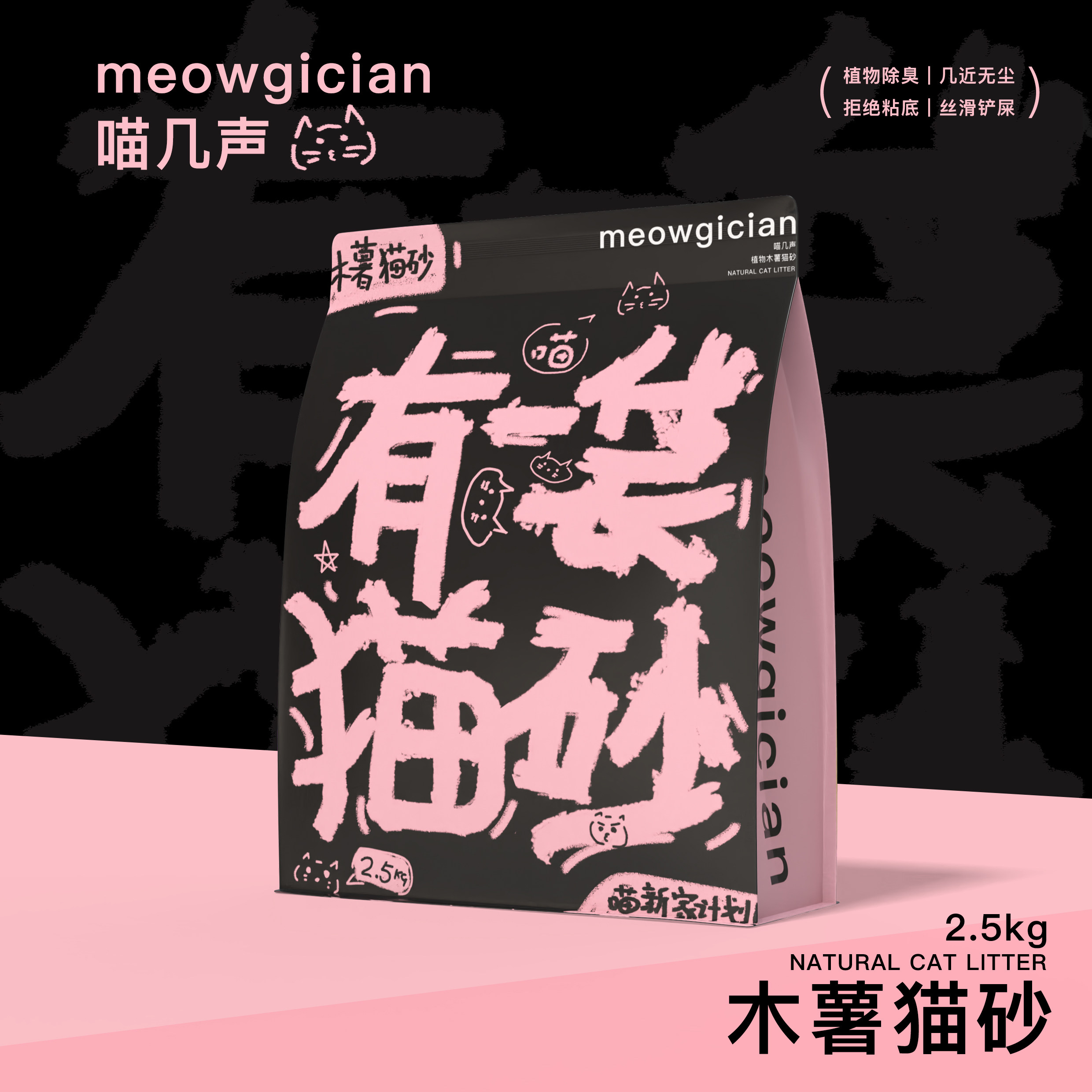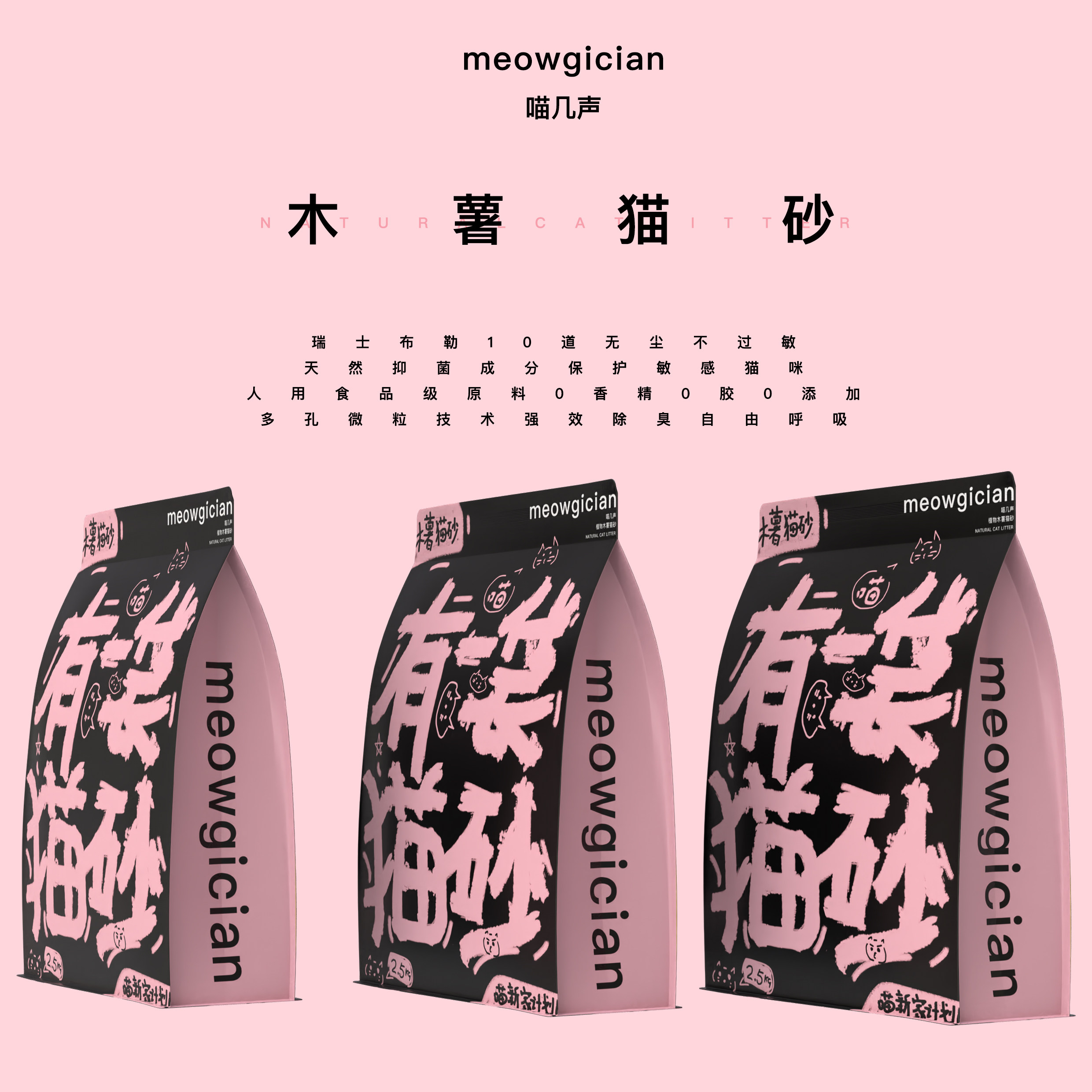 8送2喵几声植物木薯猫砂5斤装近无尘无香低敏快速结团不易粘底 - 喵几声mewogician企业店