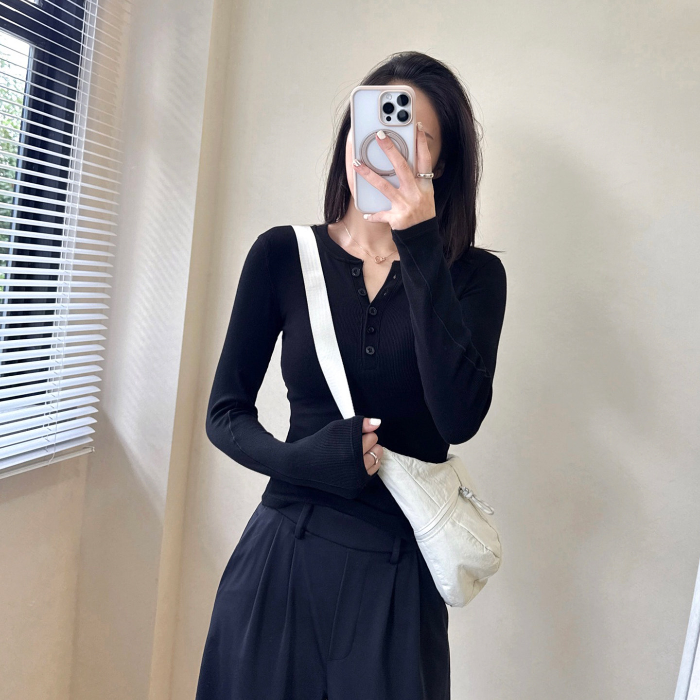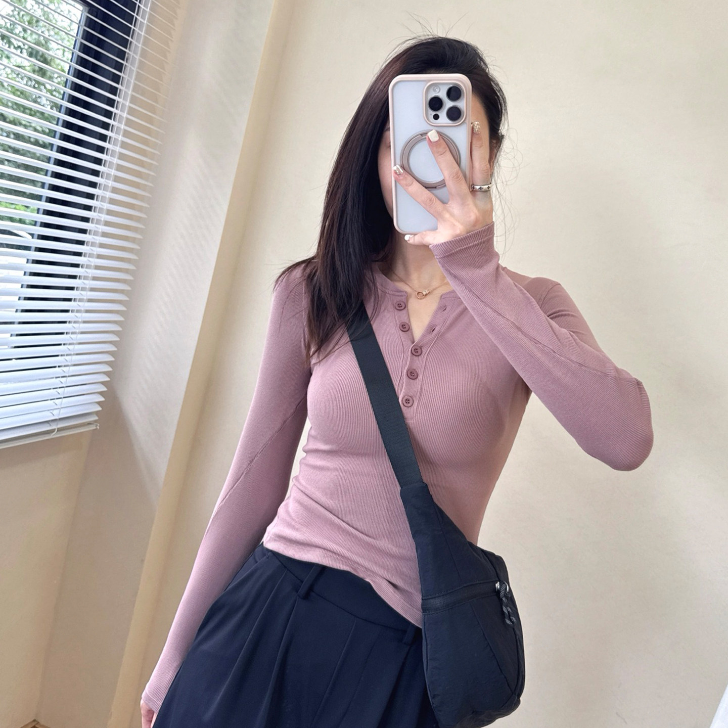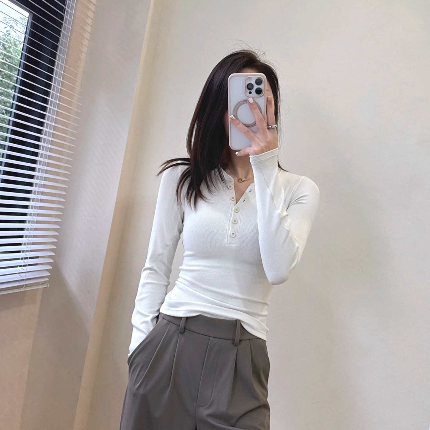 25款女士Hold Tightt Long-Sleevee螺纹排扣亨利衫莫代尔修身长袖 - 乐乐瑜伽服折扣店