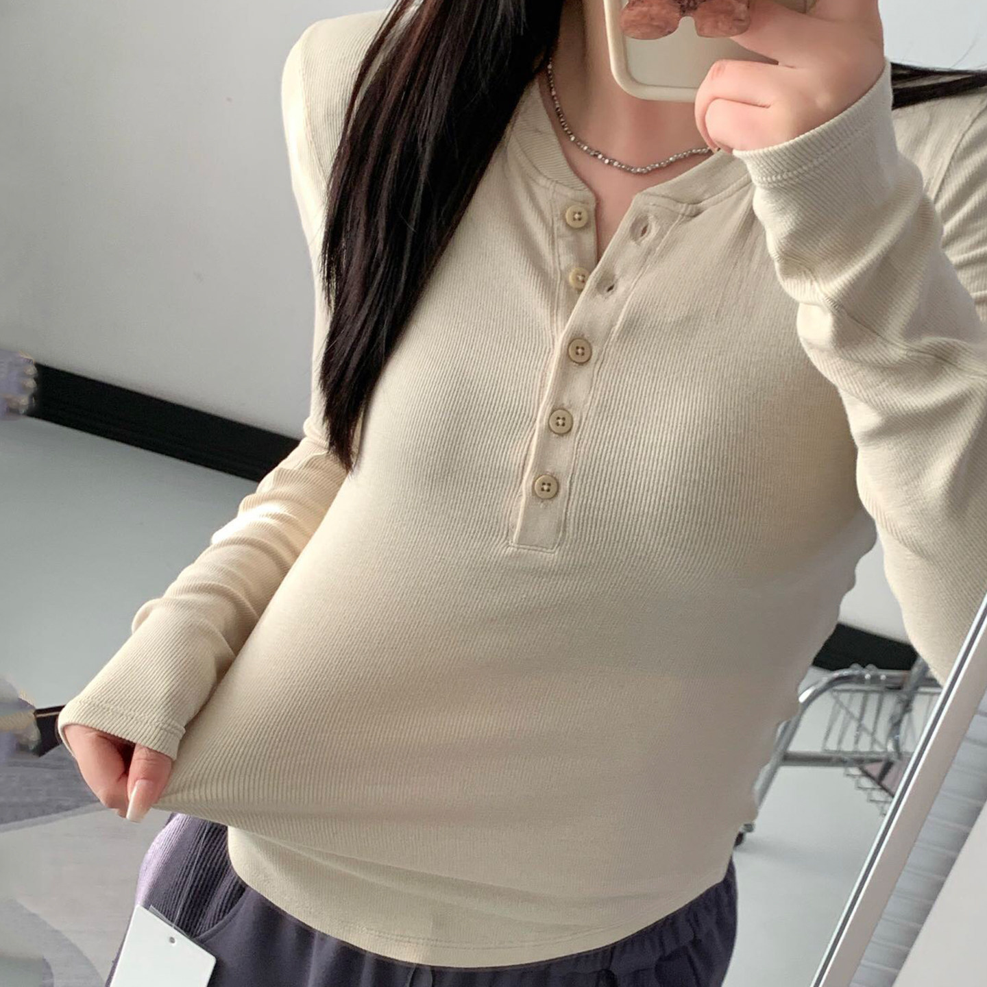 您的位置:安康生态农业开发平台  >   >  25款女士Hold Tightt Long-Sleevee螺纹排扣亨利衫莫代尔修身长袖