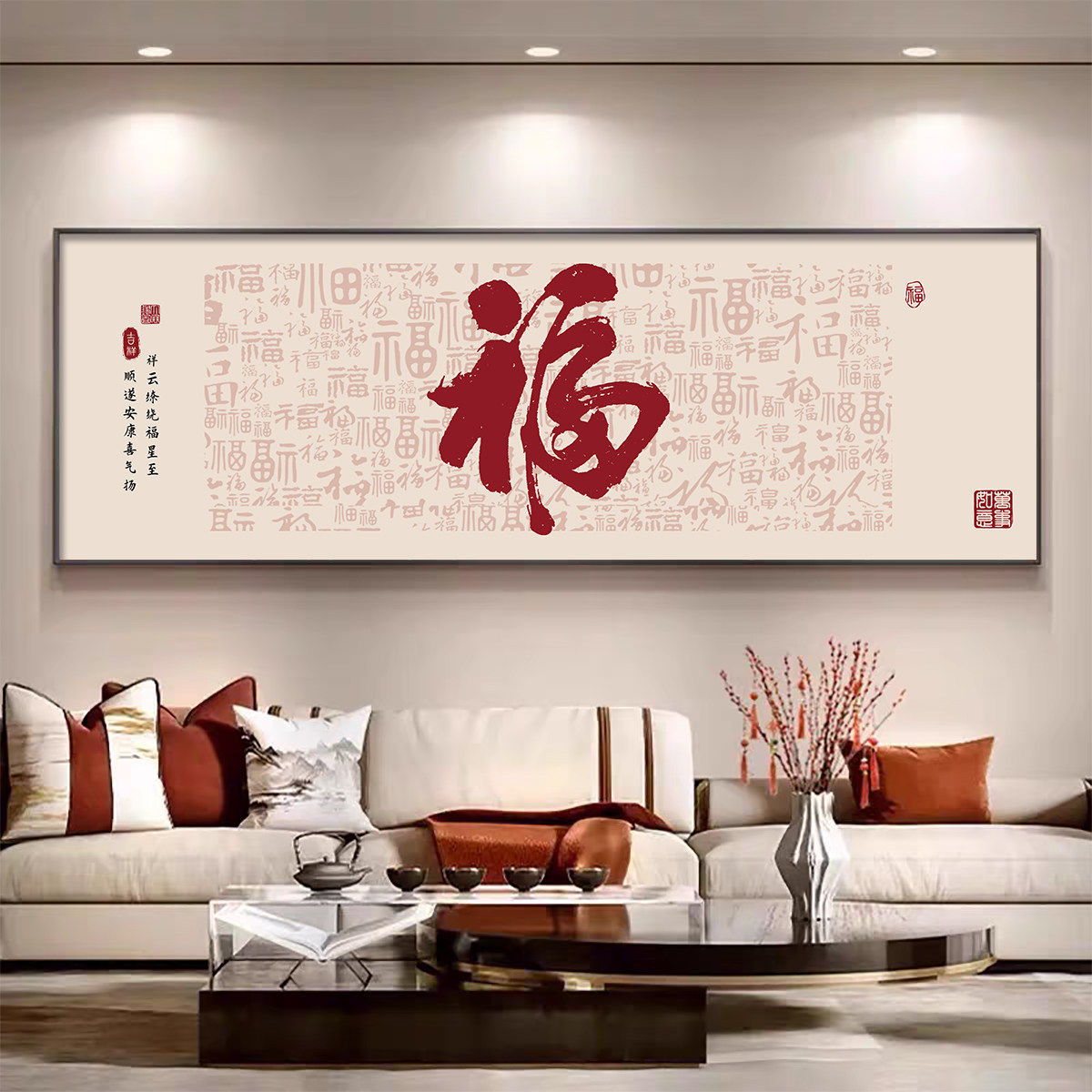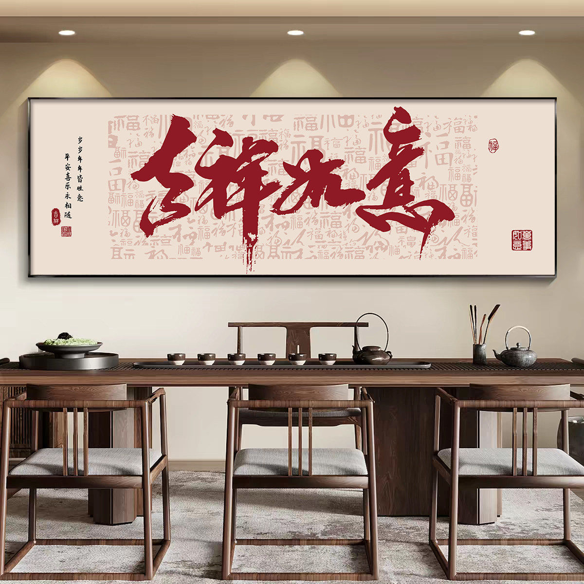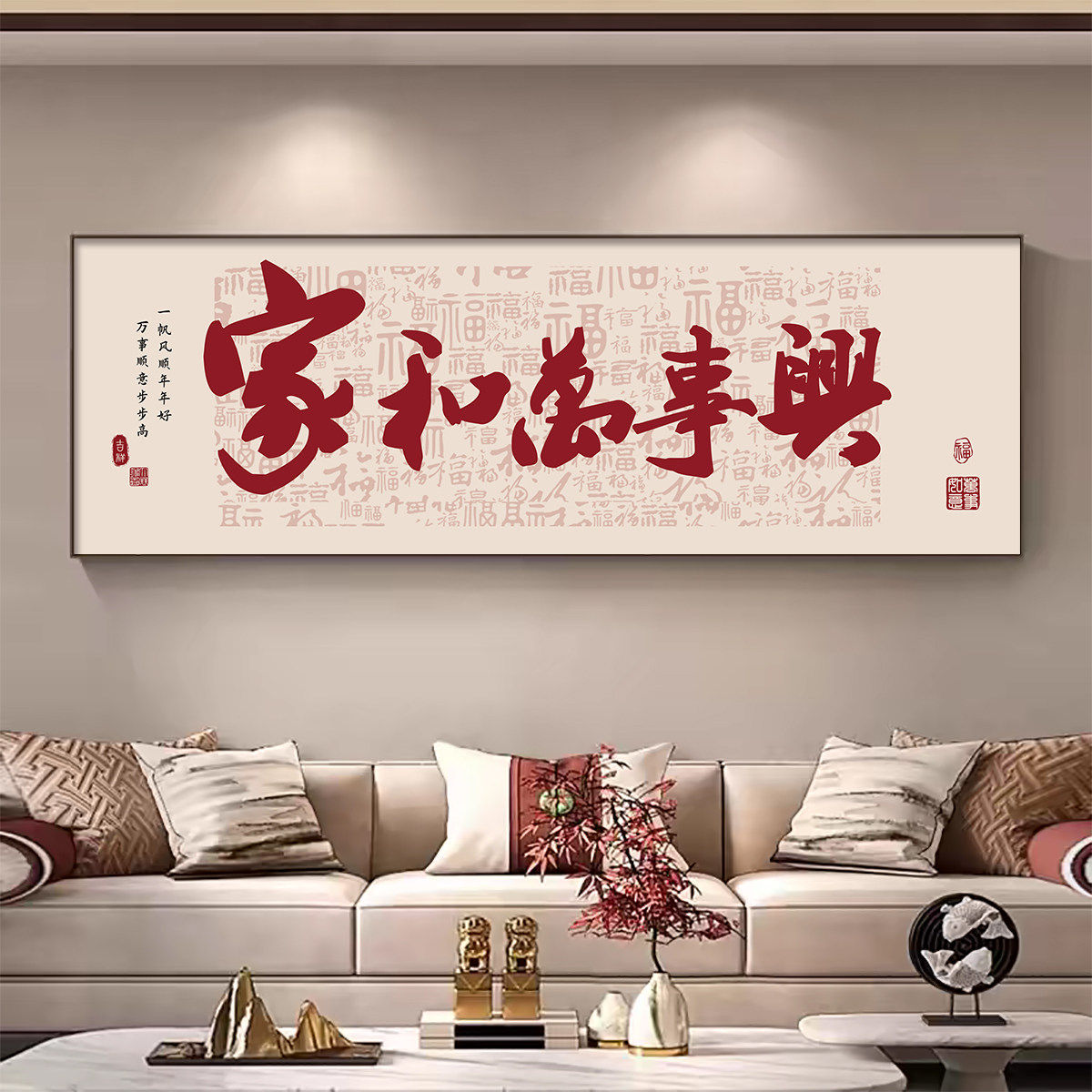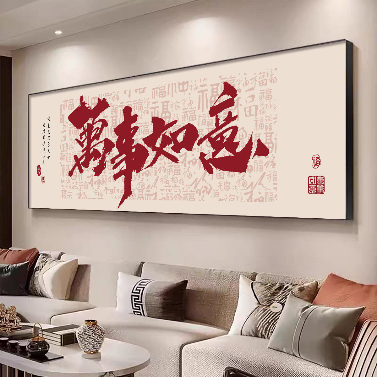新中式客厅装饰画led吉祥如意沙发背景墙挂画好寓意轻奢大气壁画 - 晨曦美体