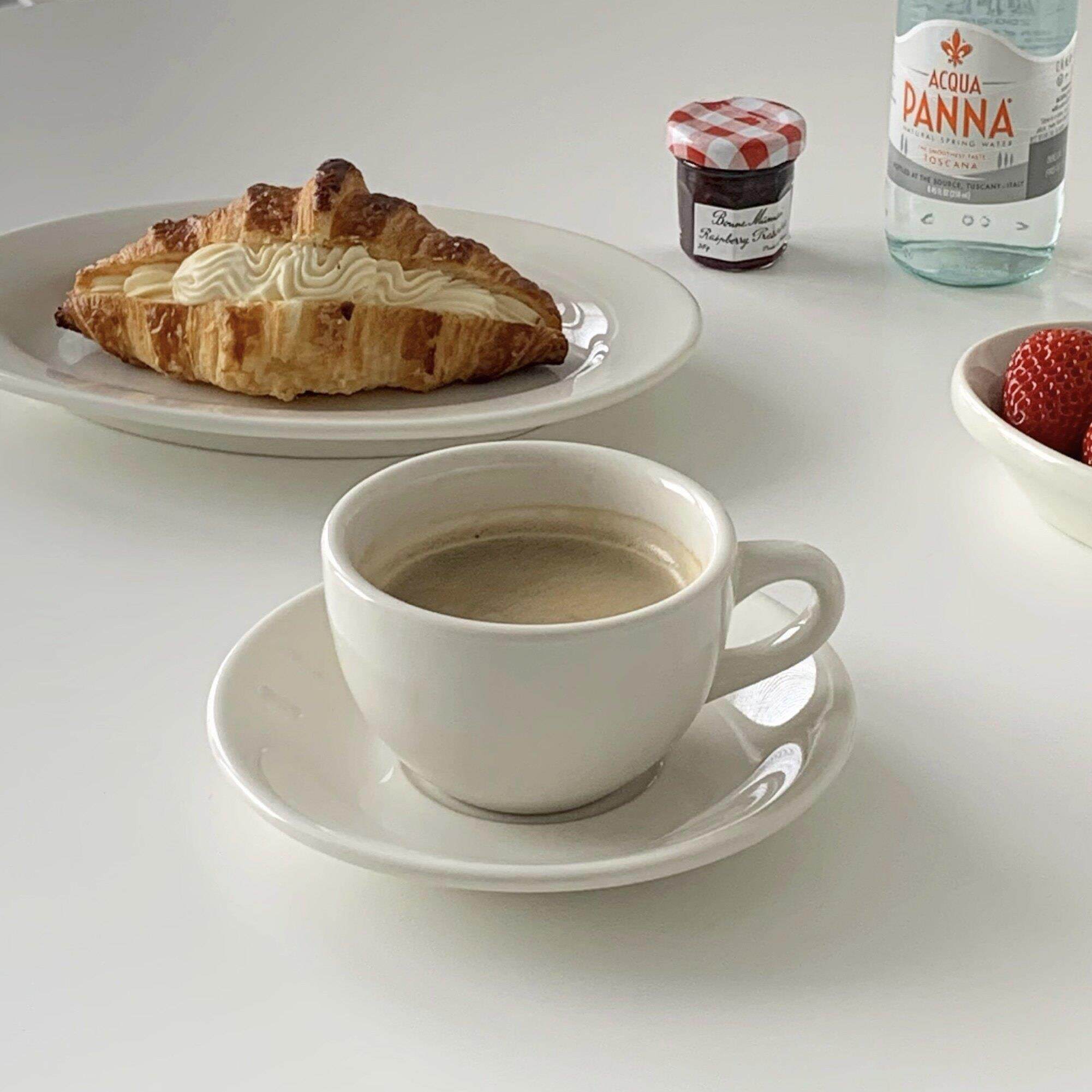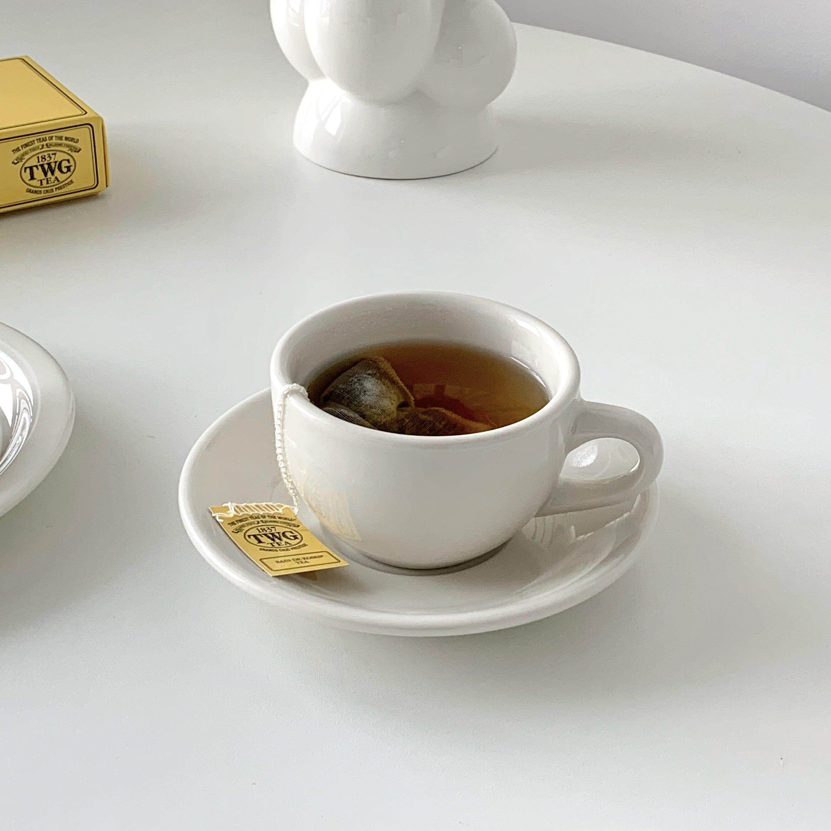 On the table - 乳白系列乳白陶瓷咖啡杯碟 下午茶杯碟套装220ml - 汁语蒂芙专卖店