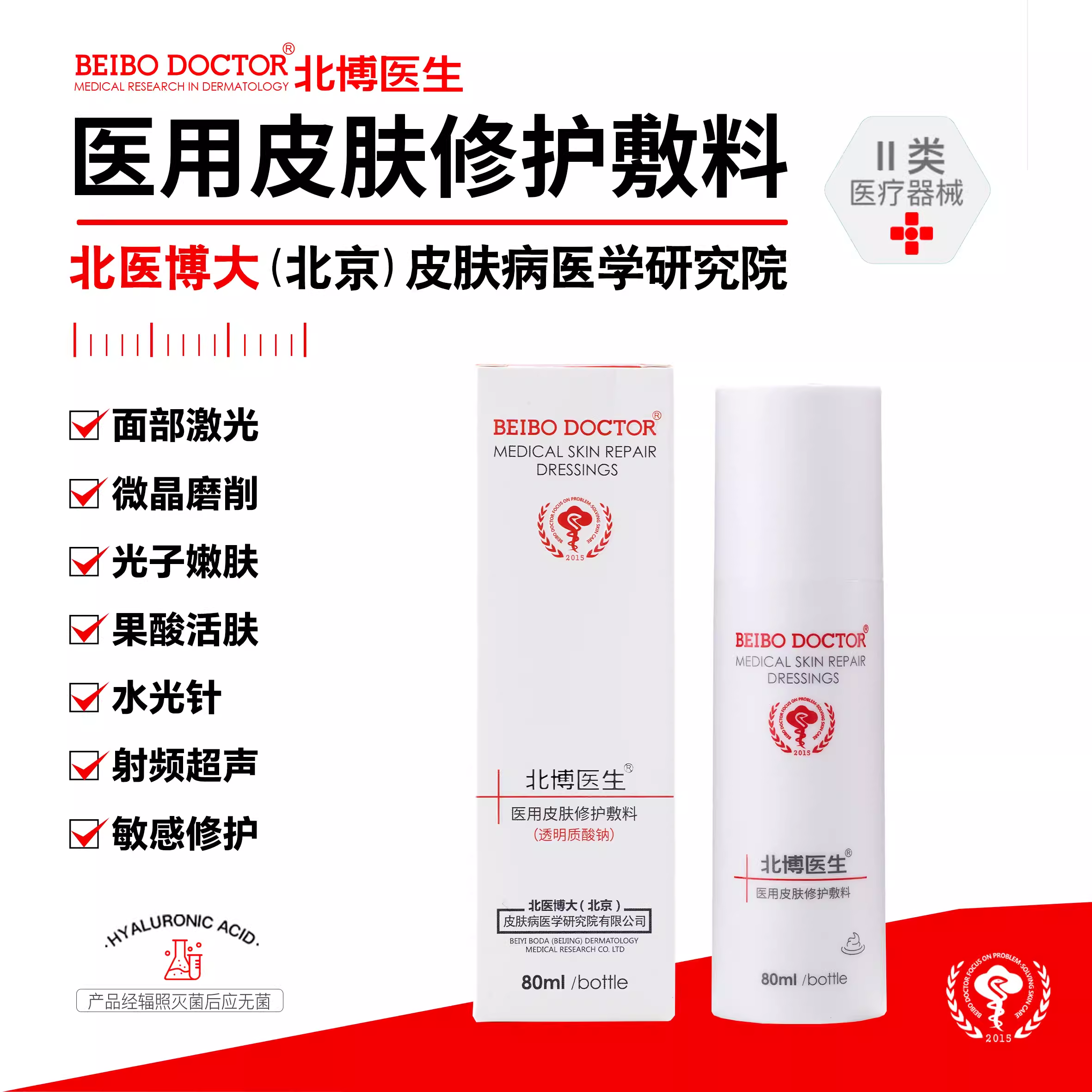 北博医生医用皮肤修护敷料水100ml+乳80ml套装北博透明质酸钠修护 - 军世医美