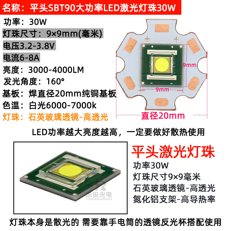 STB90激光led灯珠9090大功率30w45w50w强光射灯手电筒led灯芯白光 - 深圳市添锐光电