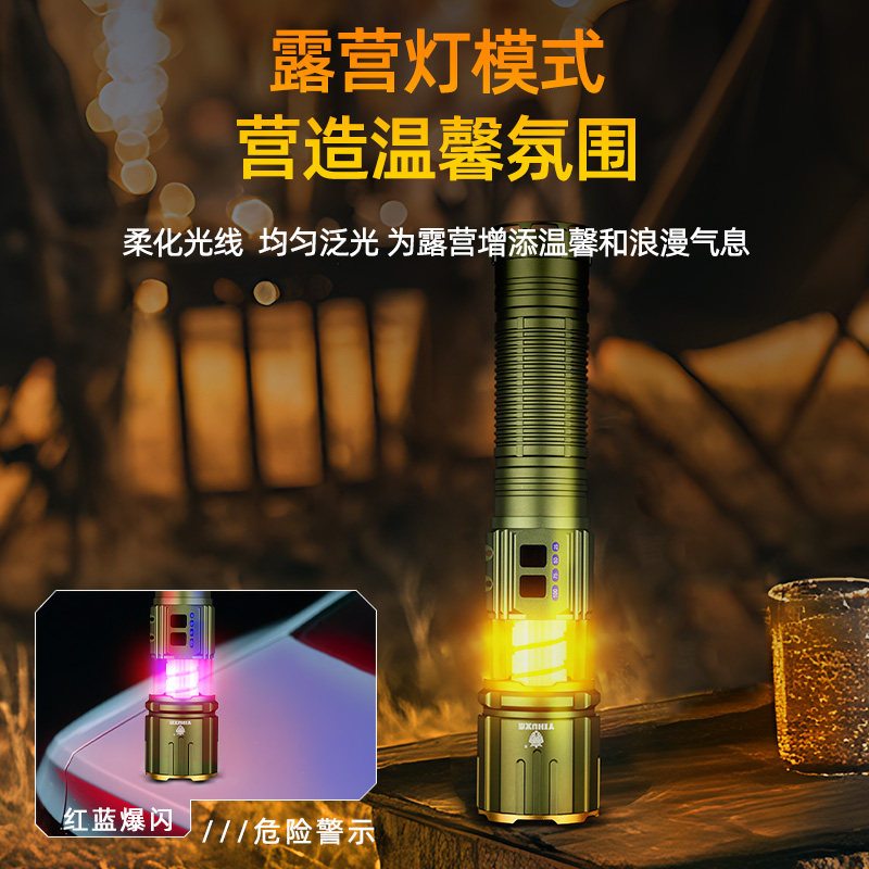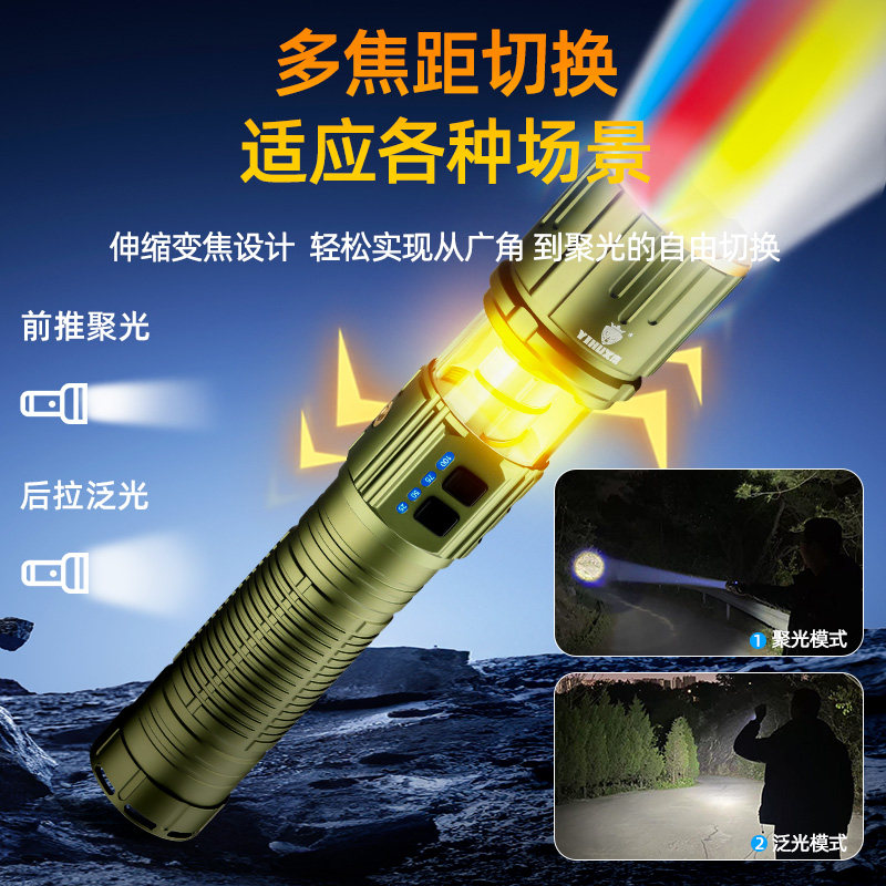 义虎5色光源强光手电筒露营灯背带激光远射多功能变焦大功率续航 - 义虎旗舰店