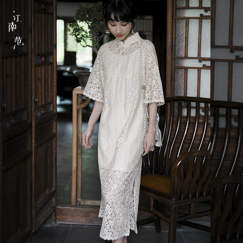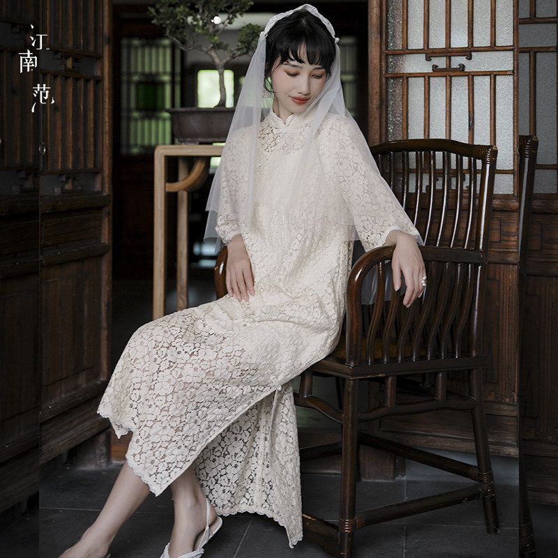 您的位置:安康生态农业开发平台  >   >  江南范米色订婚改良旗袍敬酒服蕾丝夏民国风名媛年轻款复古连衣裙