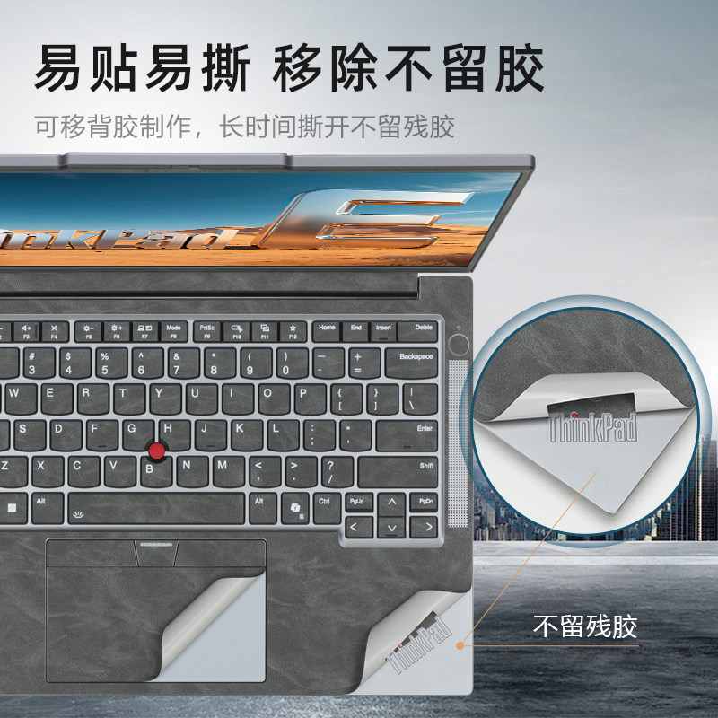 适用于2025联想ThinkPadE14贴纸T14外壳贴膜T14p Gen3电脑盖膜T14s Gen6笔记本皮革保护膜E14 Gen7机身膜键盘 - 靖建数码专营店