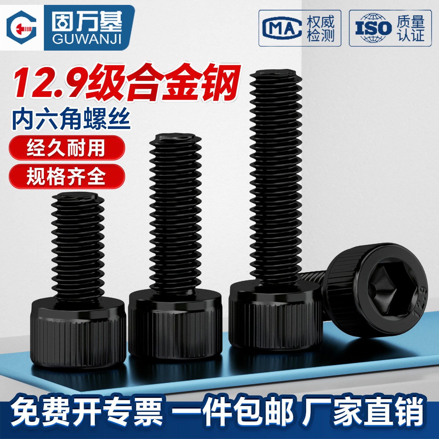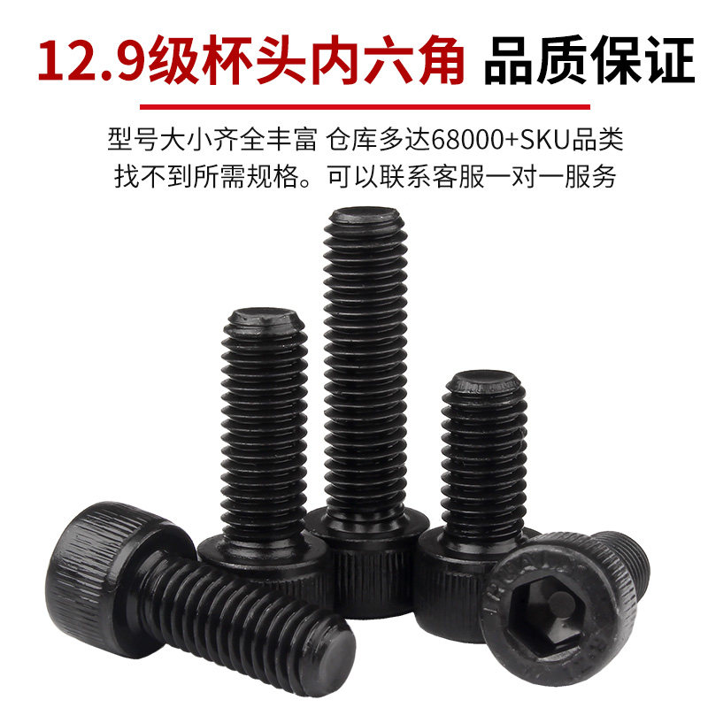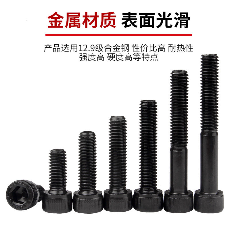 12.9级内六角螺丝钉圆柱头螺钉发黑高强度杯头加长螺栓M3M4M5M6M8 - 固万基五金科技
