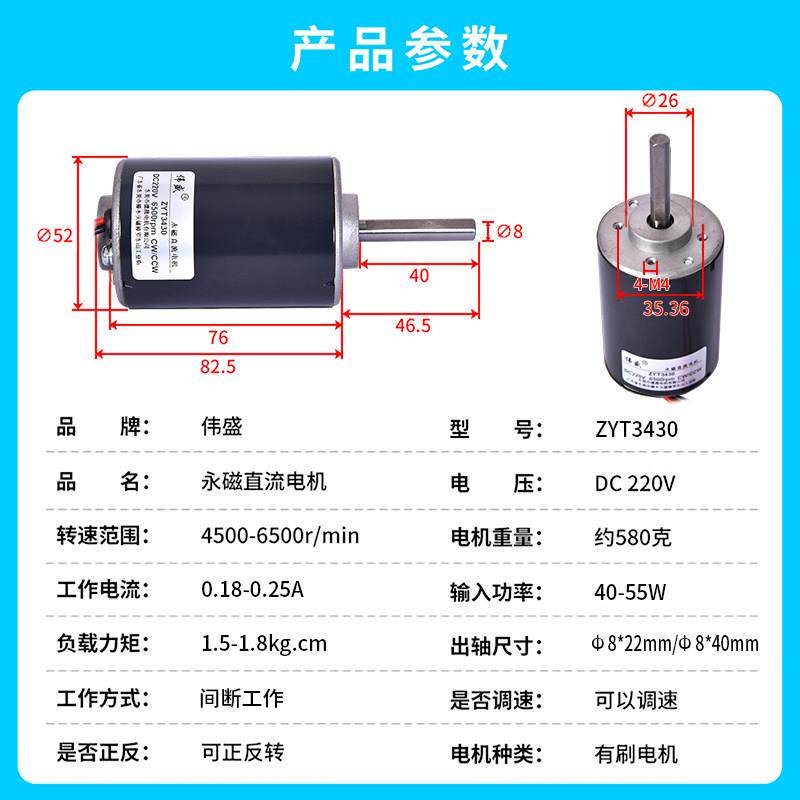 砂带机直流马达220v小型3430大功率长轴马达微型调速高速小马达 - 皇颜旗舰店
