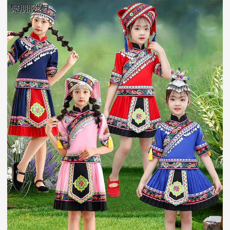 儿童演出服壮族男女童少数民族舞蹈服仡佬族苗族竹竿舞表演服 - 聚朋潮牌服饰