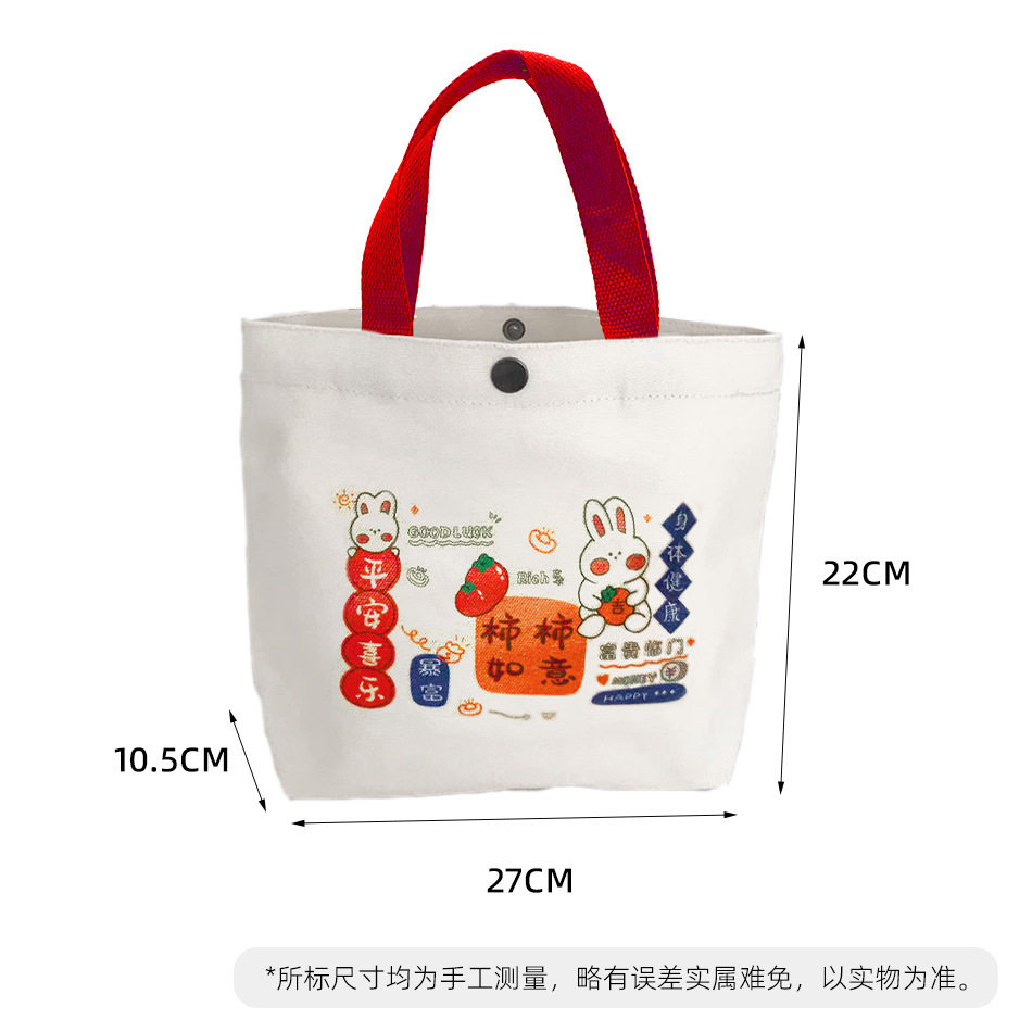 新款帆布包柿柿如意手提包小方包时尚休闲可爱便当包手提袋手拎包 - 茜茜精品小屋