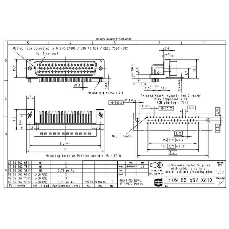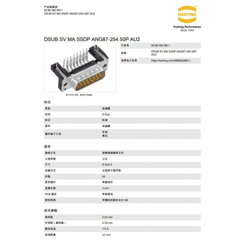 HARTING浩亭 09665626811 D-Sub5 7.5A50针 公头 连接器 波峰焊接 - 怜芳草商贸店的小店78