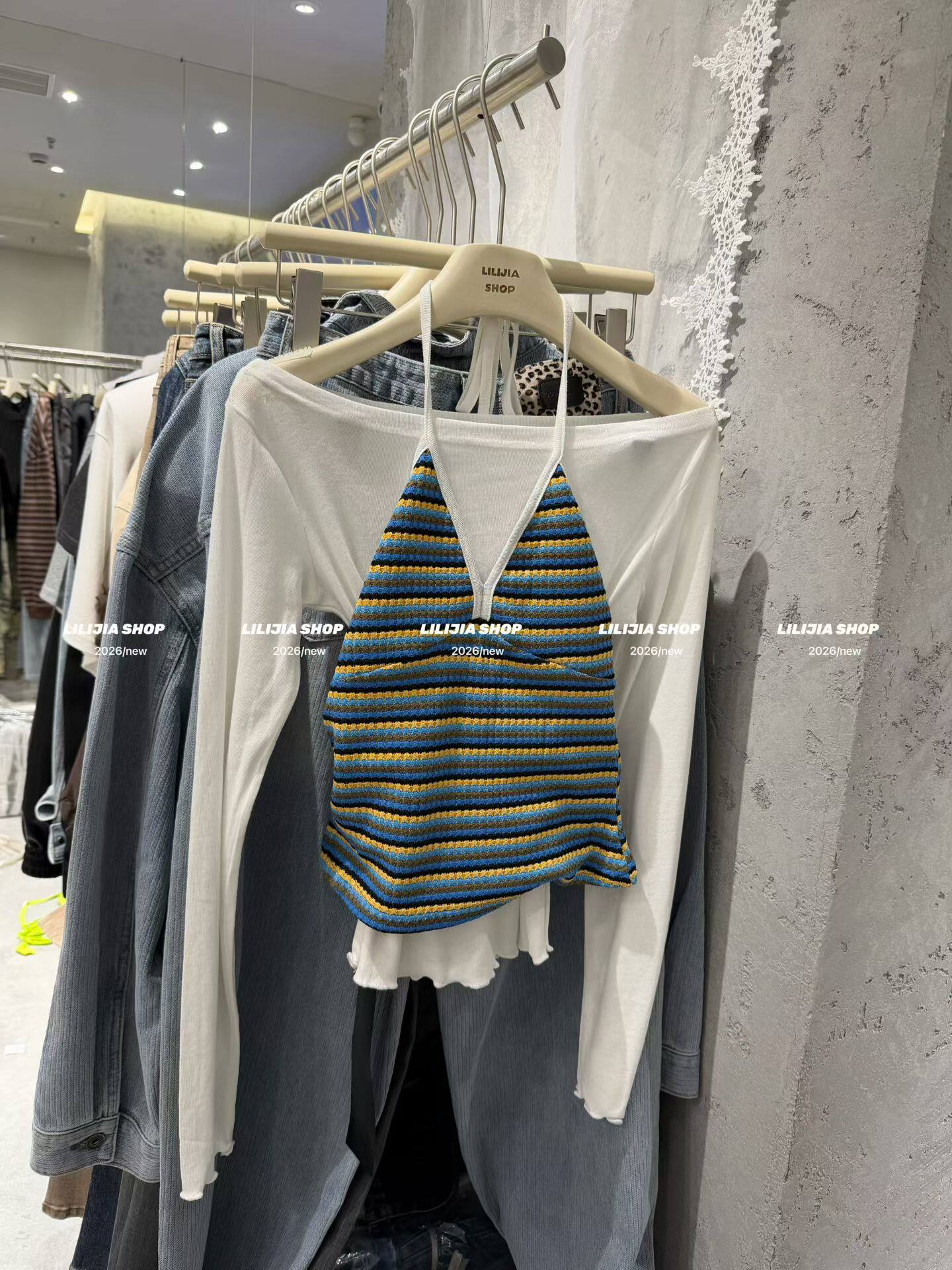Miss家 2026新款韩版时尚百搭显瘦吊带背心+长袖T恤两件套套装女 - Miss家 潮流女装馆