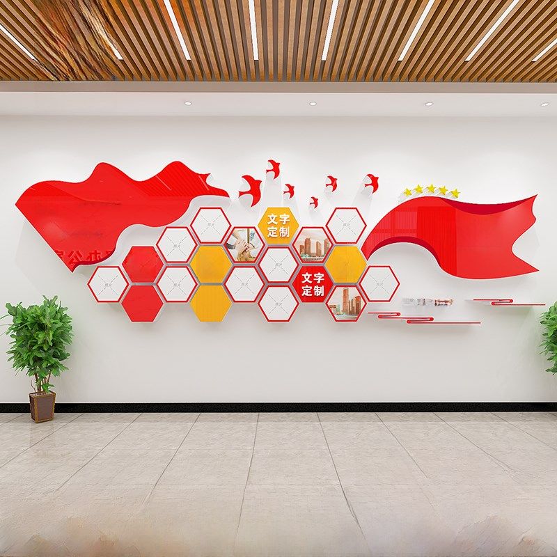 党建文化墙设计党员活动室t红色主题推广版面定制党建党建公众栏 - 同和坊商城的小店95