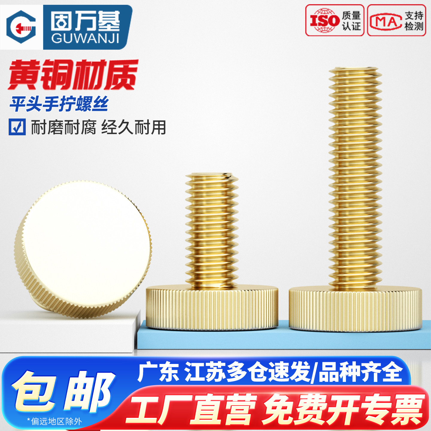 固万基黄铜手拧螺丝大头GB835黄铜滚花平头手拧螺丝钉螺栓M3-M10 - 固万基官方旗舰店