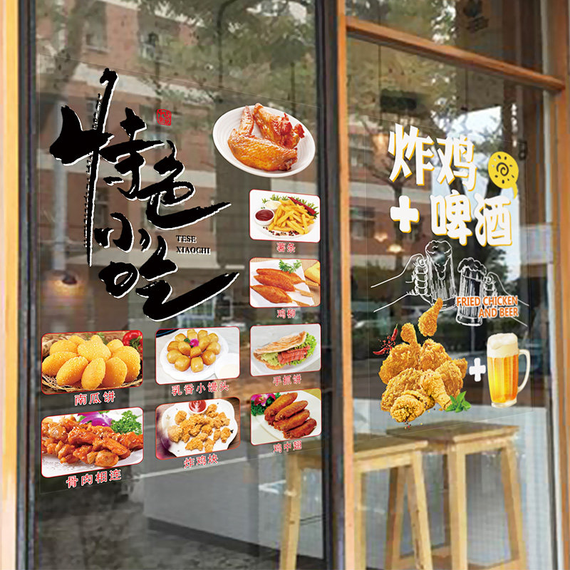炸鸡加啤酒珍珠奶茶薯条汉堡咖啡店玻璃门贴纸店铺橱窗装饰墙贴画 - 昌轩隆商城的小店