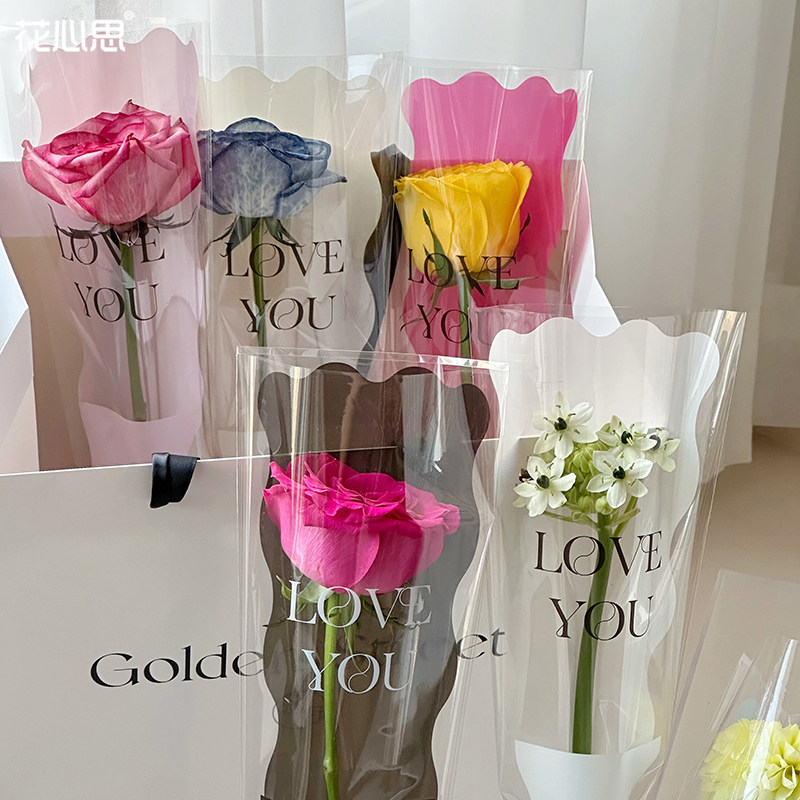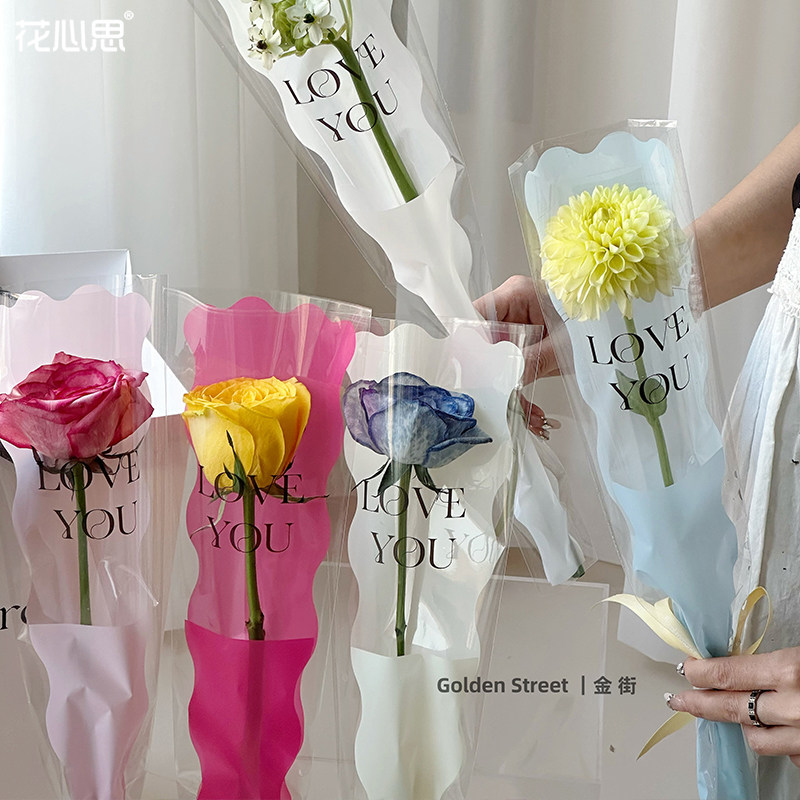花心思 母亲节鱼尾单支袋手工玫瑰鲜花艺材料opp单支花束包装纸 - 花心思花艺资材官方店