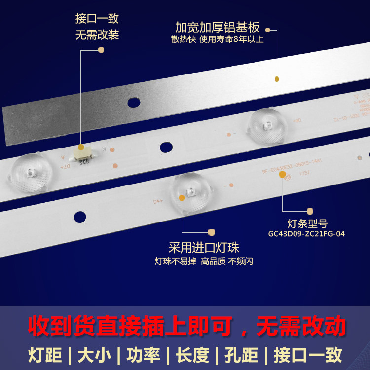 全新适用飞利浦43PFF3001/T3 43PFF5081/T3灯条GC43D09-ZC21FG-04 - 优品灯条