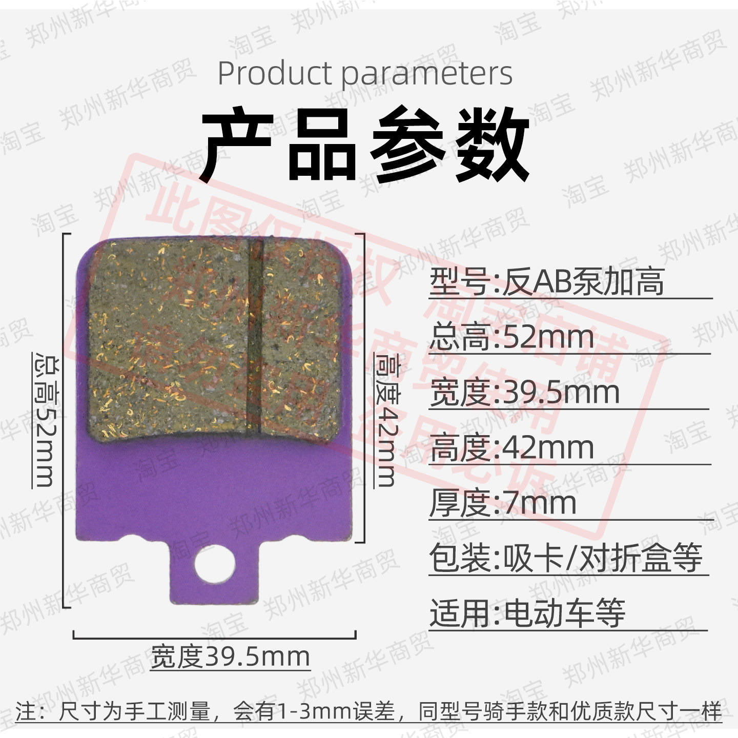 电动车电摩前反刹反AB泵加高碟刹片刹车片适用爱玛台铃金箭黑骑士 - 郑州新华商贸