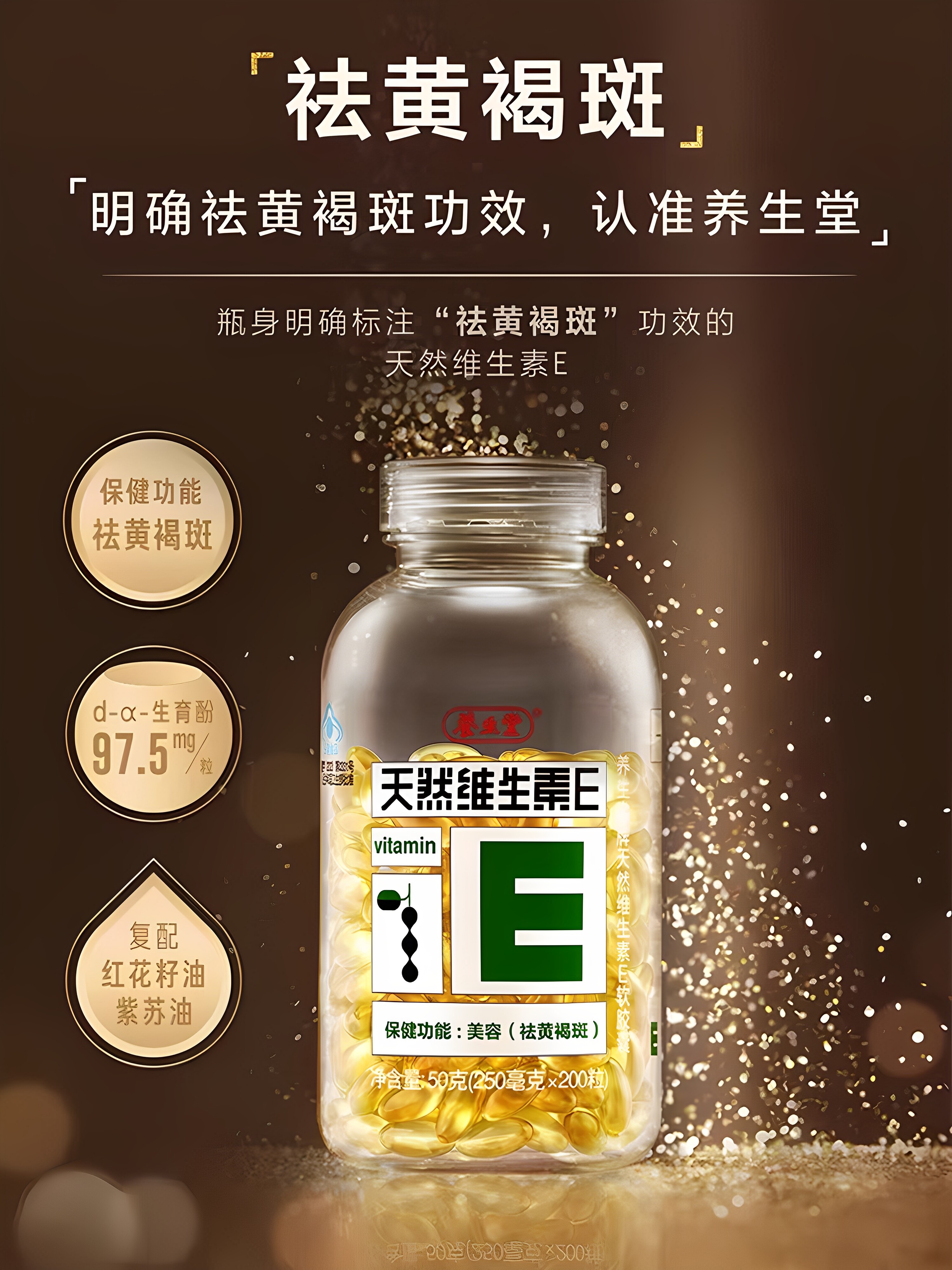 养生堂天然维生素E软胶囊ve祛维e黄褐斑保健200粒官方正品搭维C片 - 花幽居健康馆