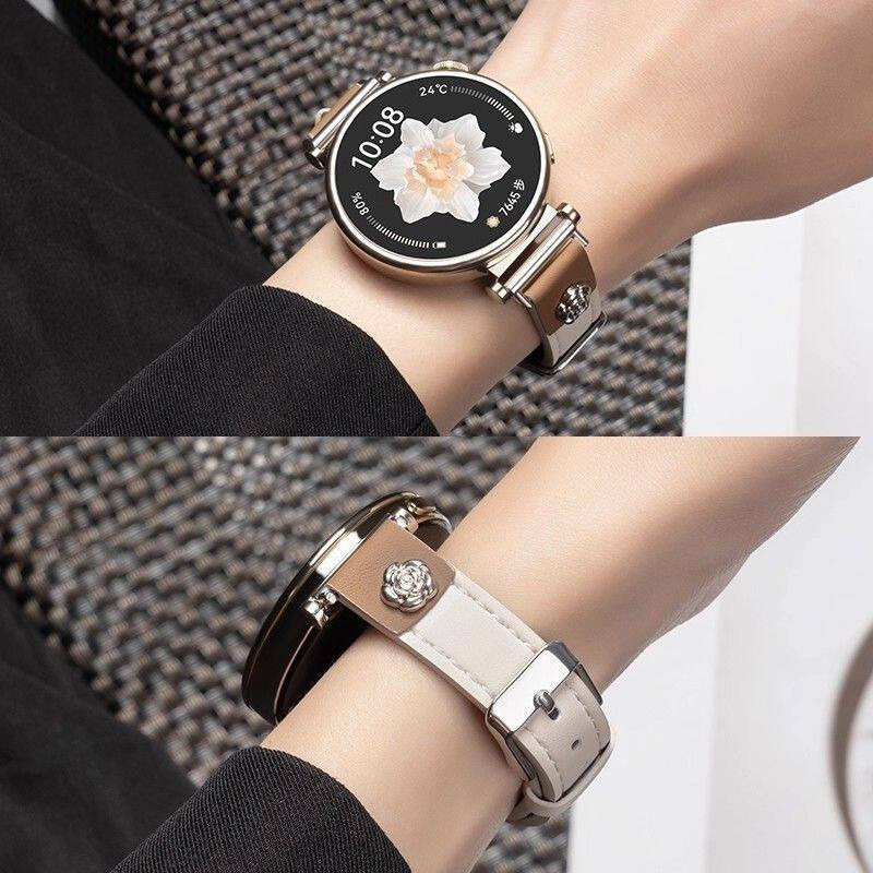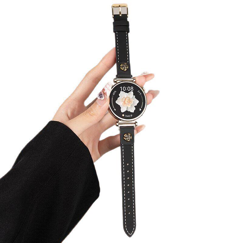 适用于华为gt6手表带gt5pro女士gt432时尚watch5新款山茶花皮 - 壳膜3C
