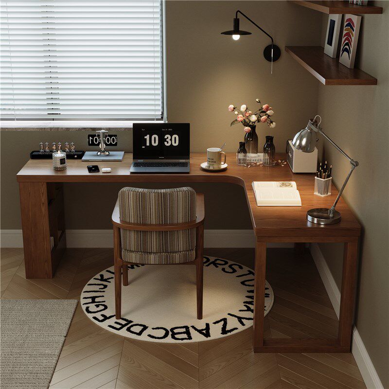 实木转角书桌带柜子家用电脑桌台式卧室墙角l型办公桌学生写字桌 - 天坛祈福阁