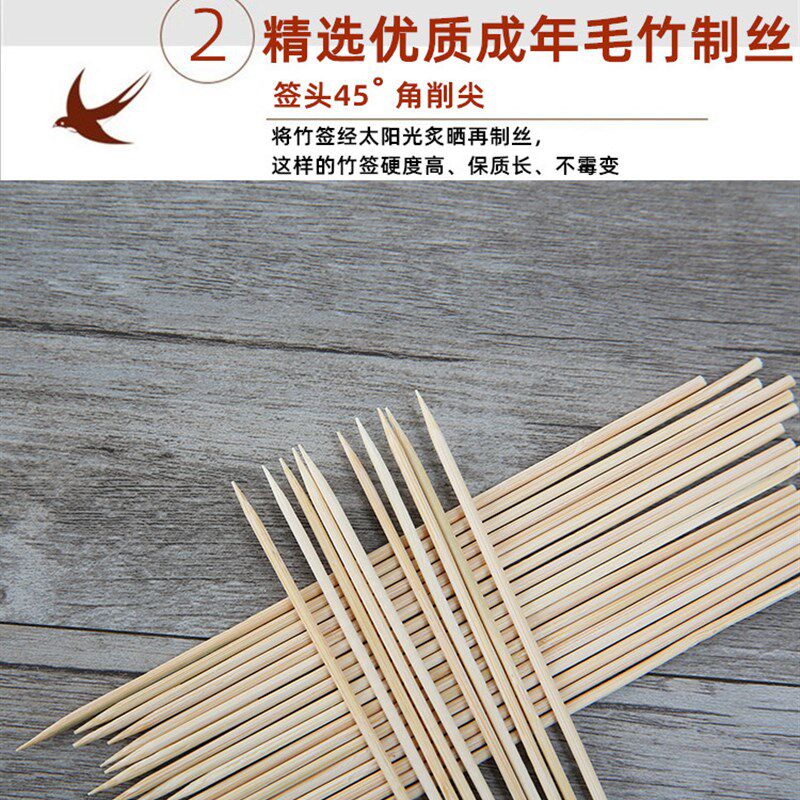 烧烤热狗竹签15cm*2.0mm鸡排鸡柳酱香饼烤肠臭豆腐水果一次性签子 - 锸荷阁商城的小店10