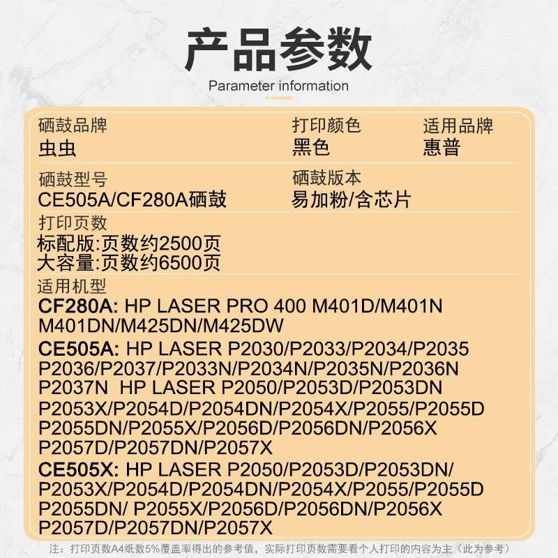 适用hp惠普P2055dn硒鼓m401d M401DN M425DN P2050 P2053 CE505A 2035n m400 05A 80A打印机墨盒cf280a - 虫虫办公用品旗舰店