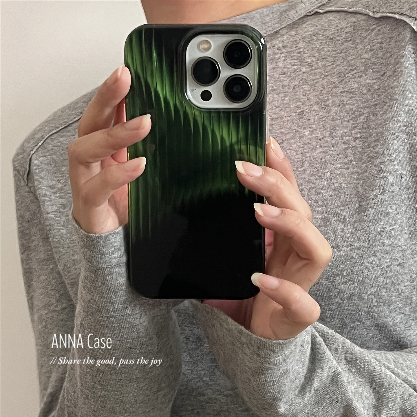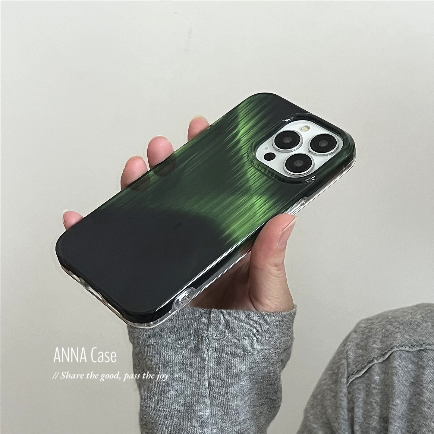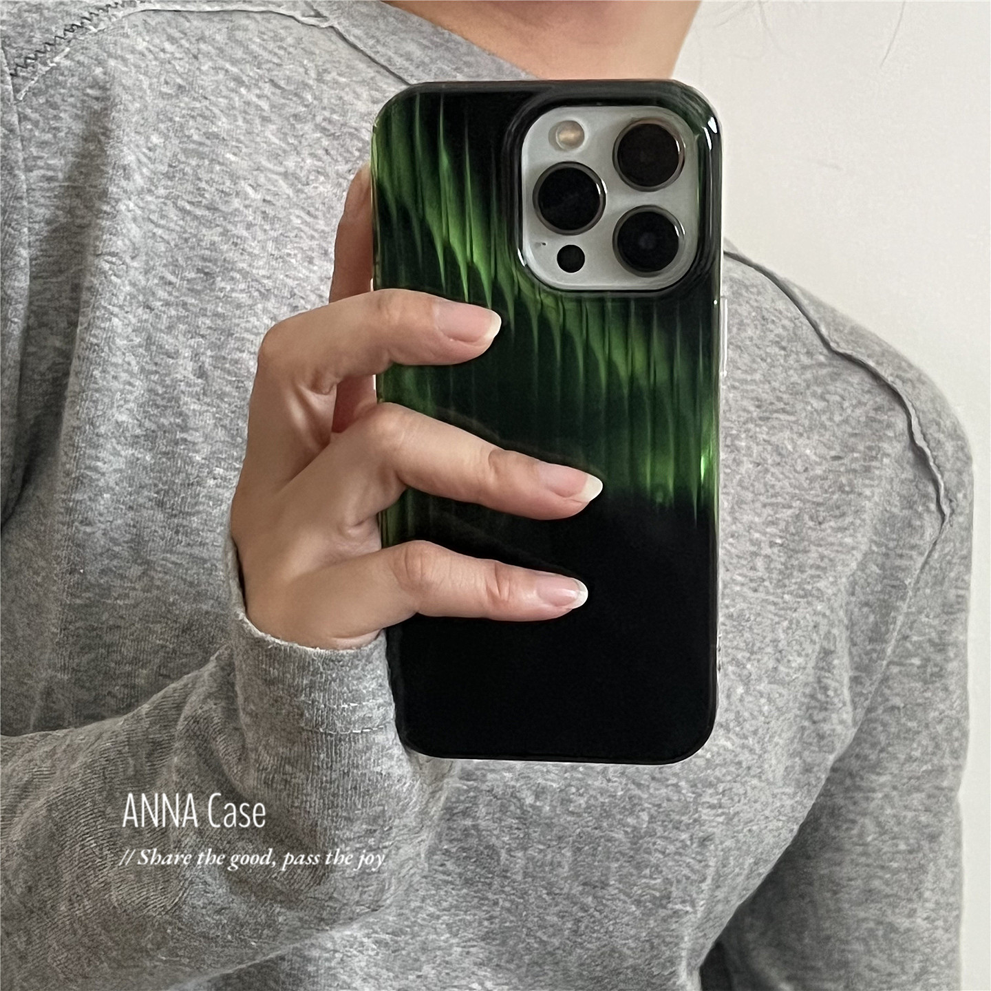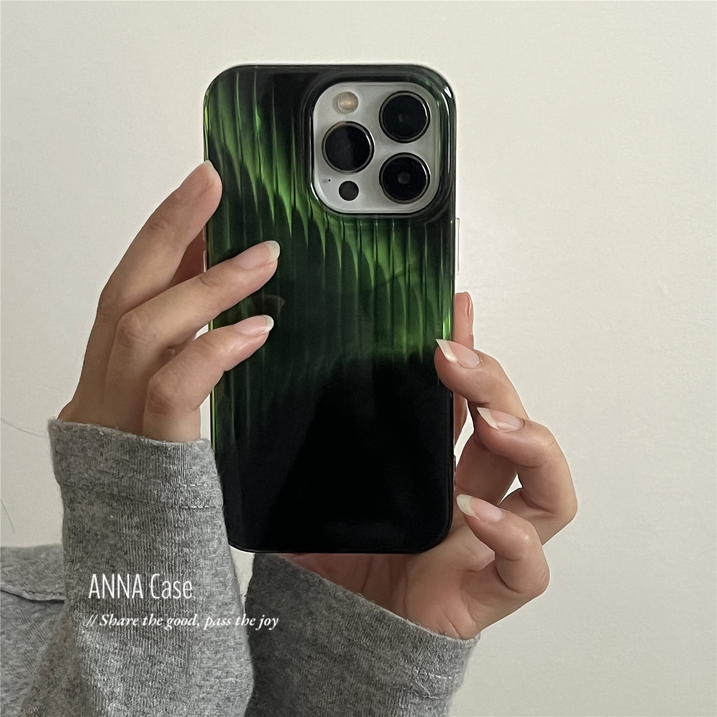 ANNACASE高级渐变光感黑绿色竖条纹手机壳适用于iPhone17pro新款16promax苹果15全包14pro防摔保护套16软壳15 - ANNA CASE