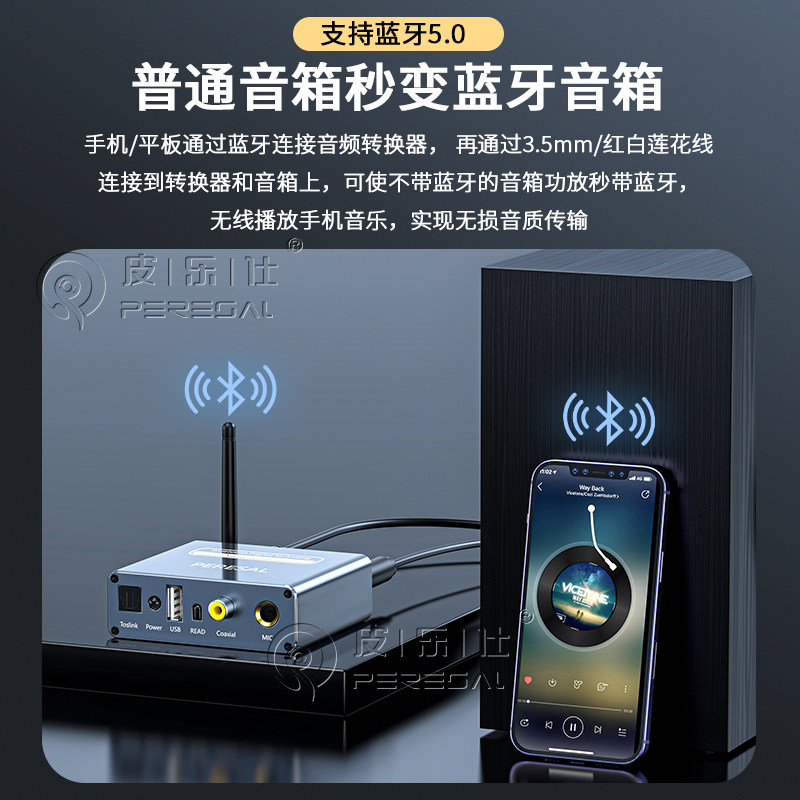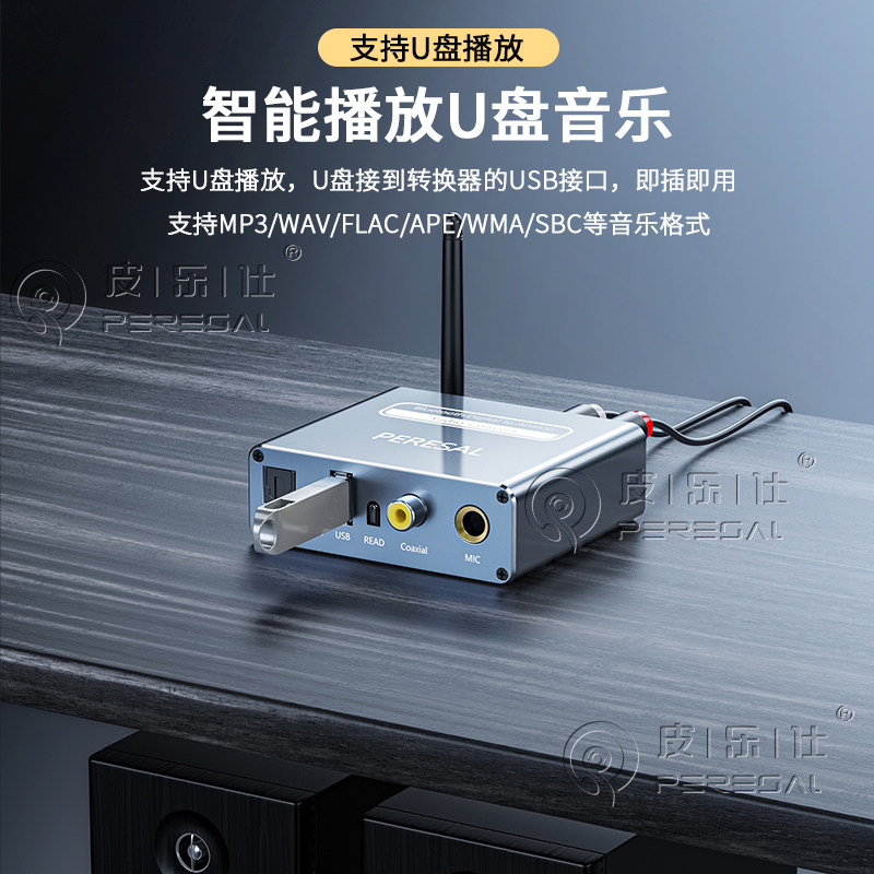 皮乐仕 适用于小米创维TCL电视数字音频SPDIF输出接功放音响话筒K歌转换器蓝牙5.0无线音乐接收器U盘无损播放 - 皮乐仕旗舰店