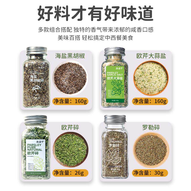 新日期海盐黑胡椒粒碎粉欧芹碎大蒜盐罗勒碎牛排意面西餐减 - 甜杉聚昌泰专卖店
