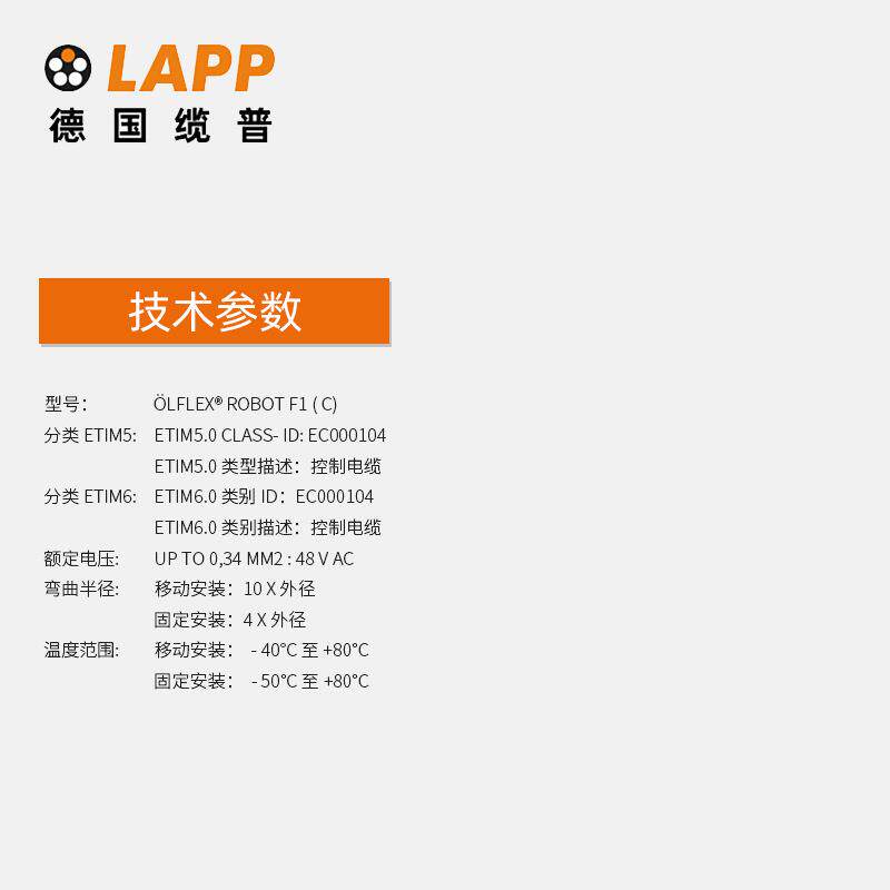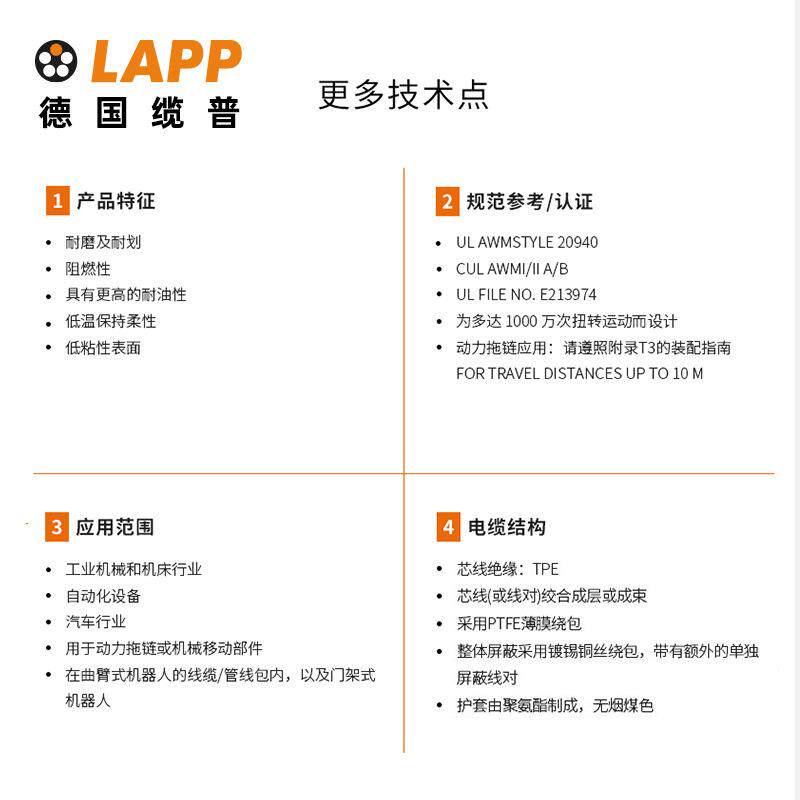 缆普LAPP电线电缆ÖLFLEX®ROBOTF1C屏蔽拖链抗扭机器人电缆 - 鸿瑞达工厂甄选店