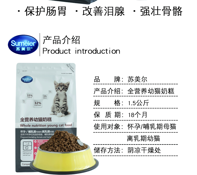 养护肠胃 苏美尔猫粮1.5kg英短蓝猫孕母猫全营养天然幼猫奶糕3斤 - 伊萨狗粮猫粮批发