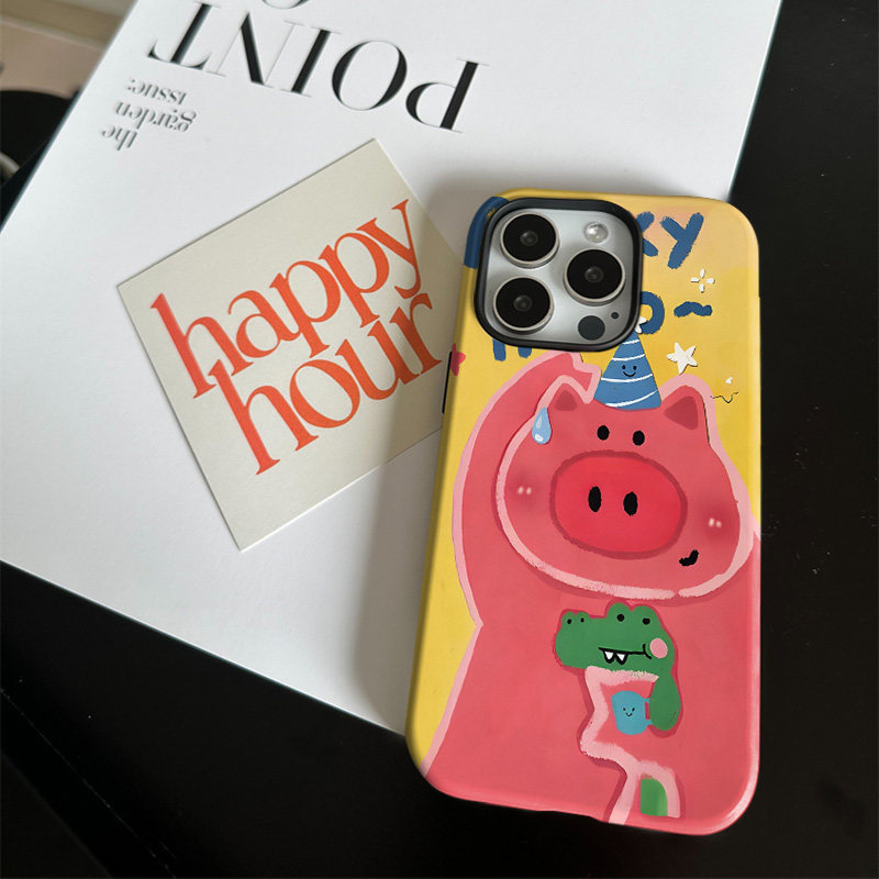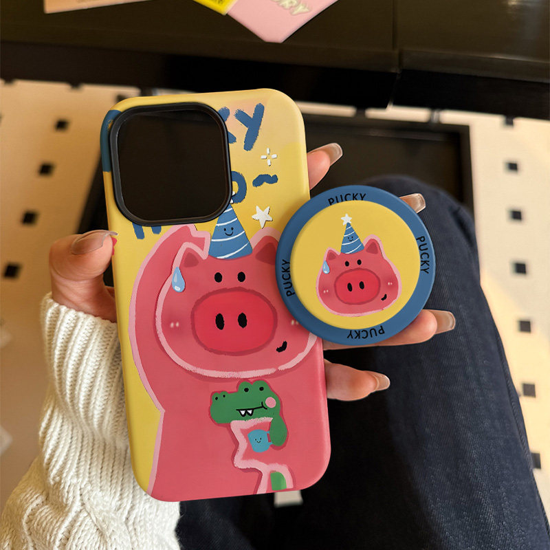 鳄鱼小猪适用苹果17promax手机壳iphone16pro菲林磁吸支架个性华为P80小米15小众vivo防摔保护壳oppo手绘涂鸦 - Funke case