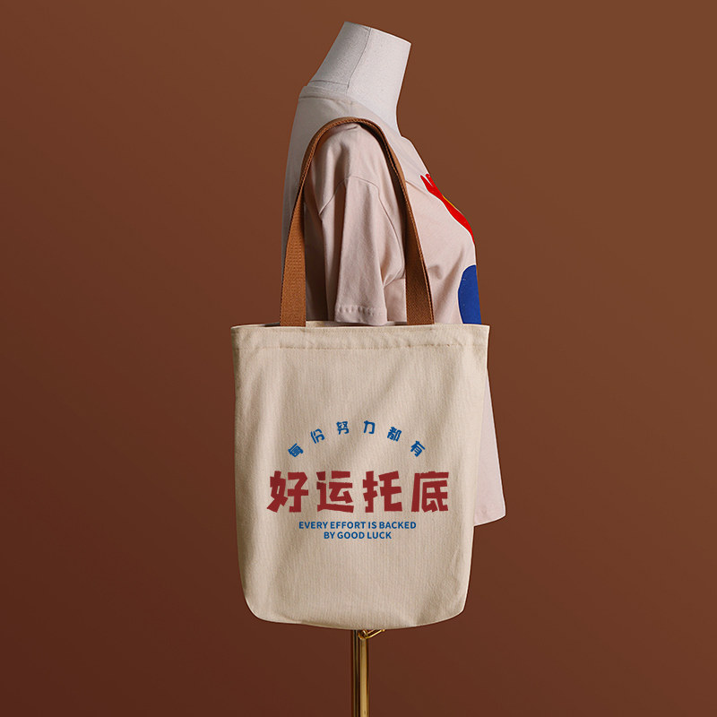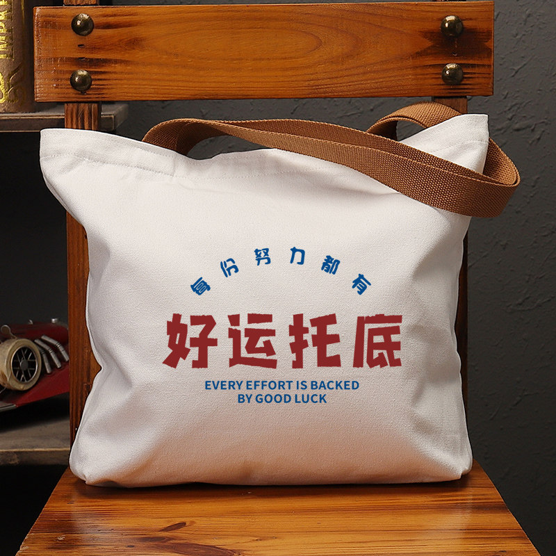 每份努力好运托底帆布袋女包手提袋环保购物大容量袋子男学生上班 - 不二创意馆
