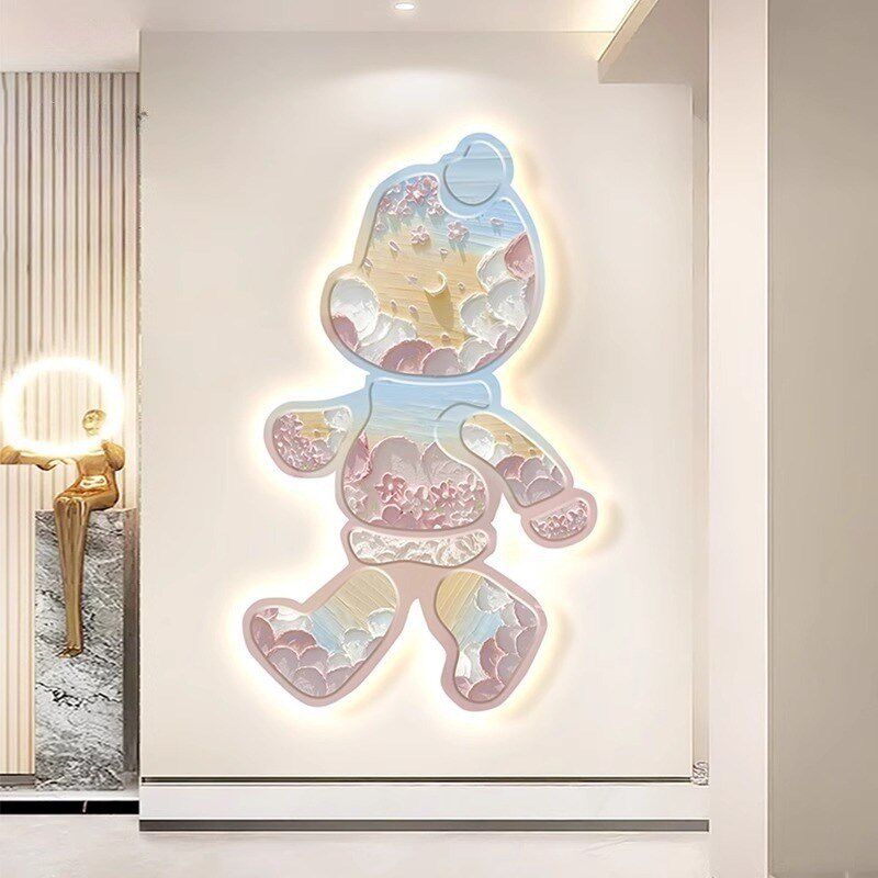 暴力熊带灯玄关装饰画LED入户正对门挂画奶油客厅走廊过道壁灯画 - tb5693213506的小店56