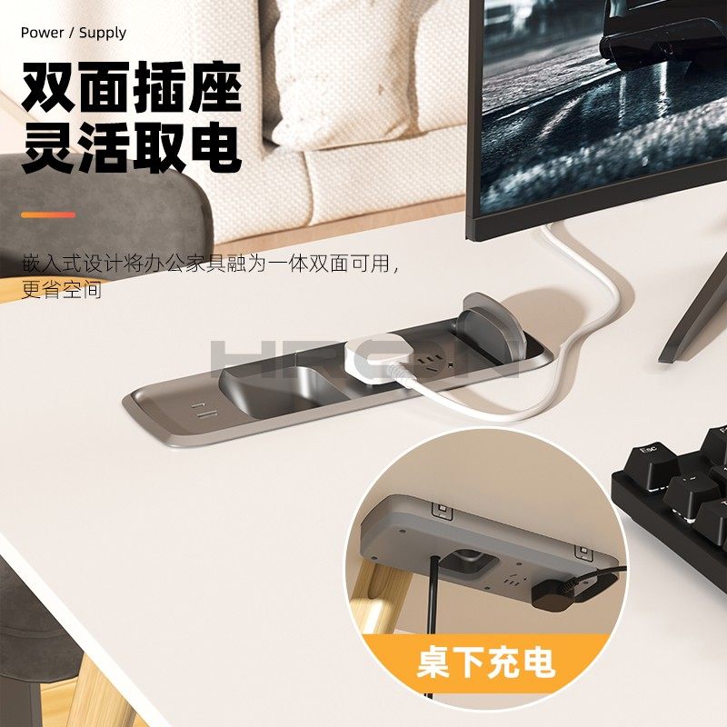 办公桌滑盖插座内嵌式隐形排插电脑桌智能过线盒嵌入桌面充电插排 - HRON智能家居