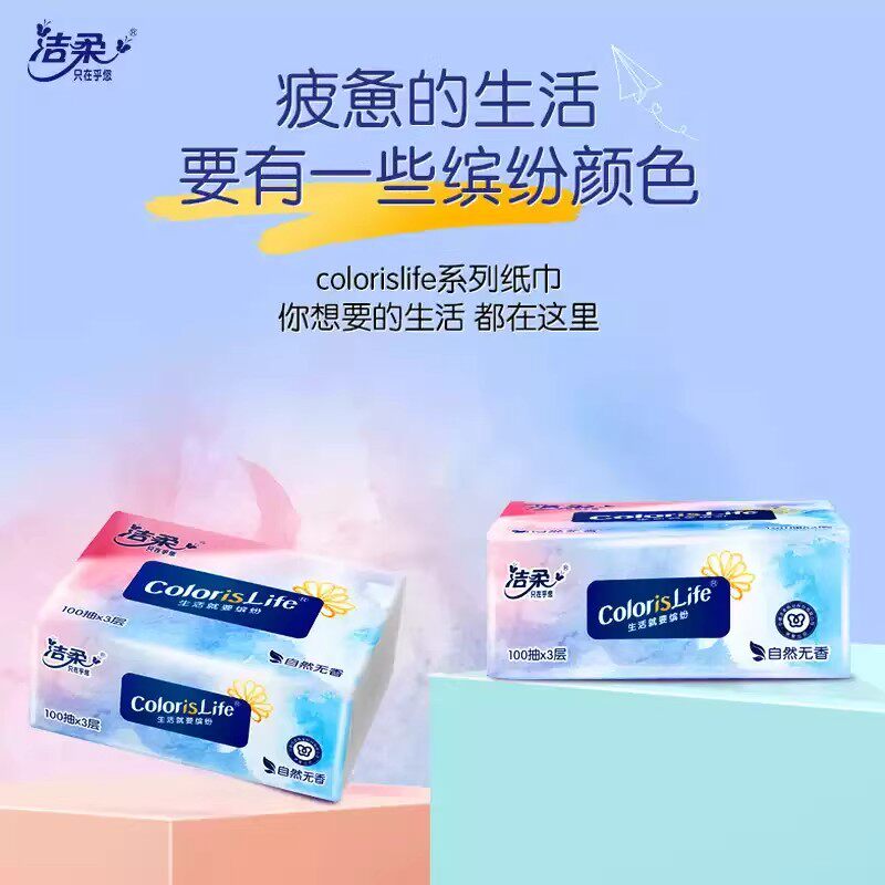 洁柔缤纷艺术抽纸3层100抽纸巾家用面巾纸卫生纸家用便携实惠装 - 恩宝居家日用