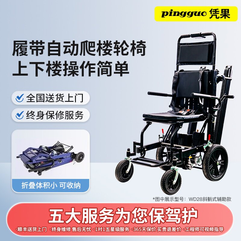 凭果上下楼梯老人使用斜躺式电动爬楼轮椅行动障碍者履带爬楼梯机 - pingguo凭果爬楼机