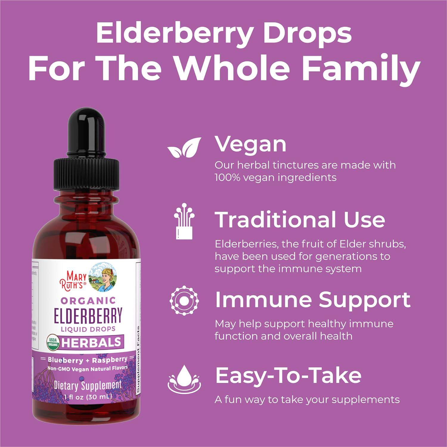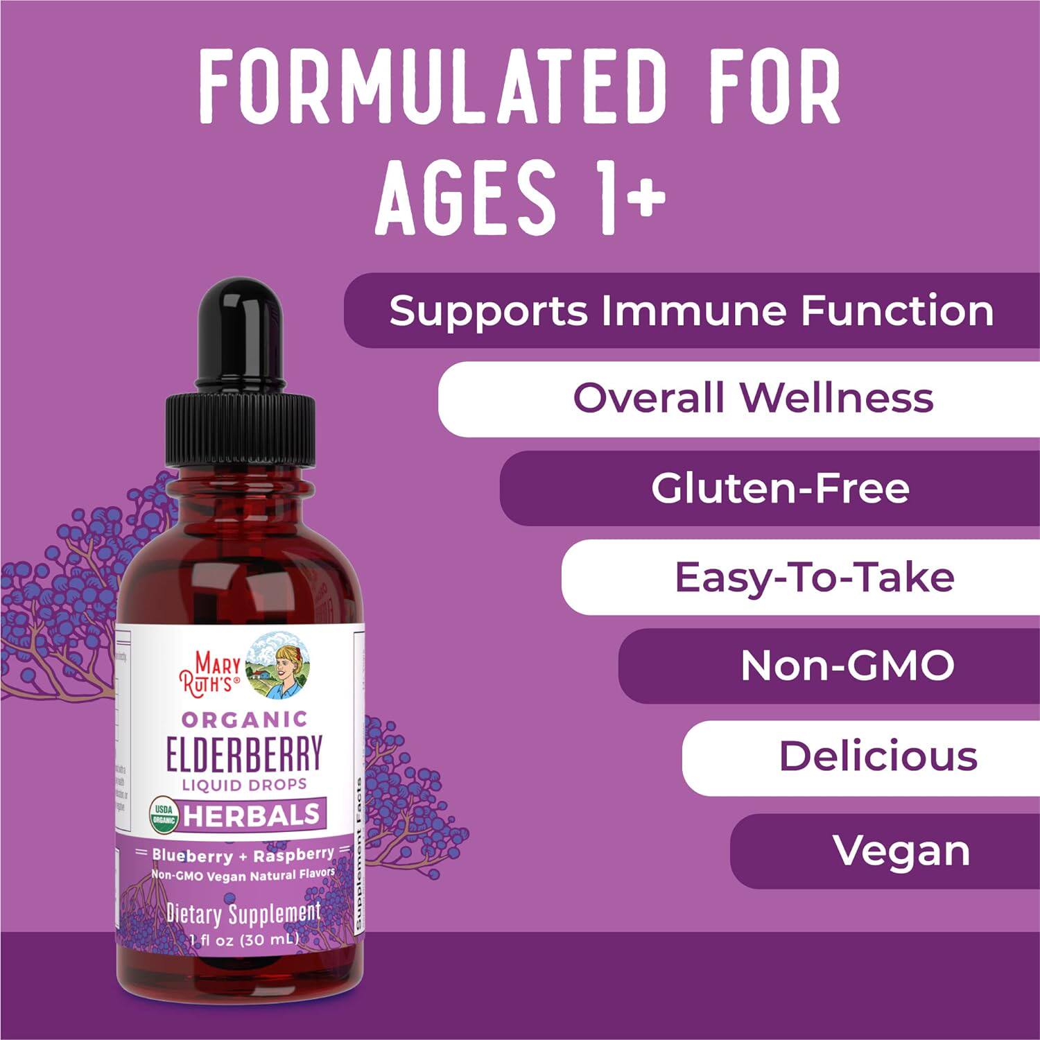 美国直邮 MaryRuth's Elderberry Syrup 无糖有机接骨木滴剂 1岁+ - 大王健康进口生酮有机食品